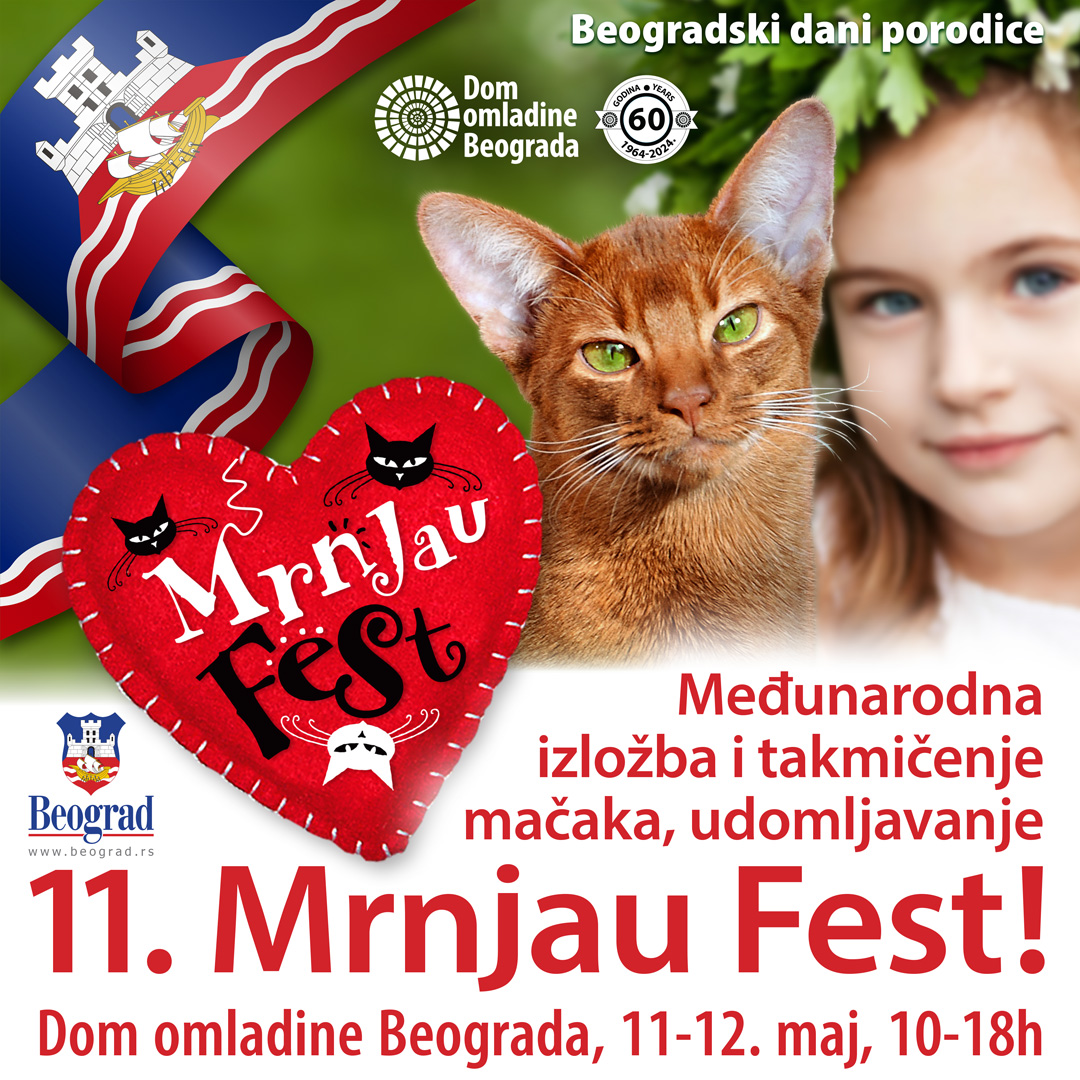 Jedanaesti po redu beogradski Mrnjau Fest zakazan je za 11-12. maj! U Domu omladine Beograda predstaviće se preko 100 očaravajućih maca iz mnogih čuvenih odgajivačnica iz Srbije i cele Evrope, a posetioci će biti u prilici da izaberu i udome zdravu i lepu macu!