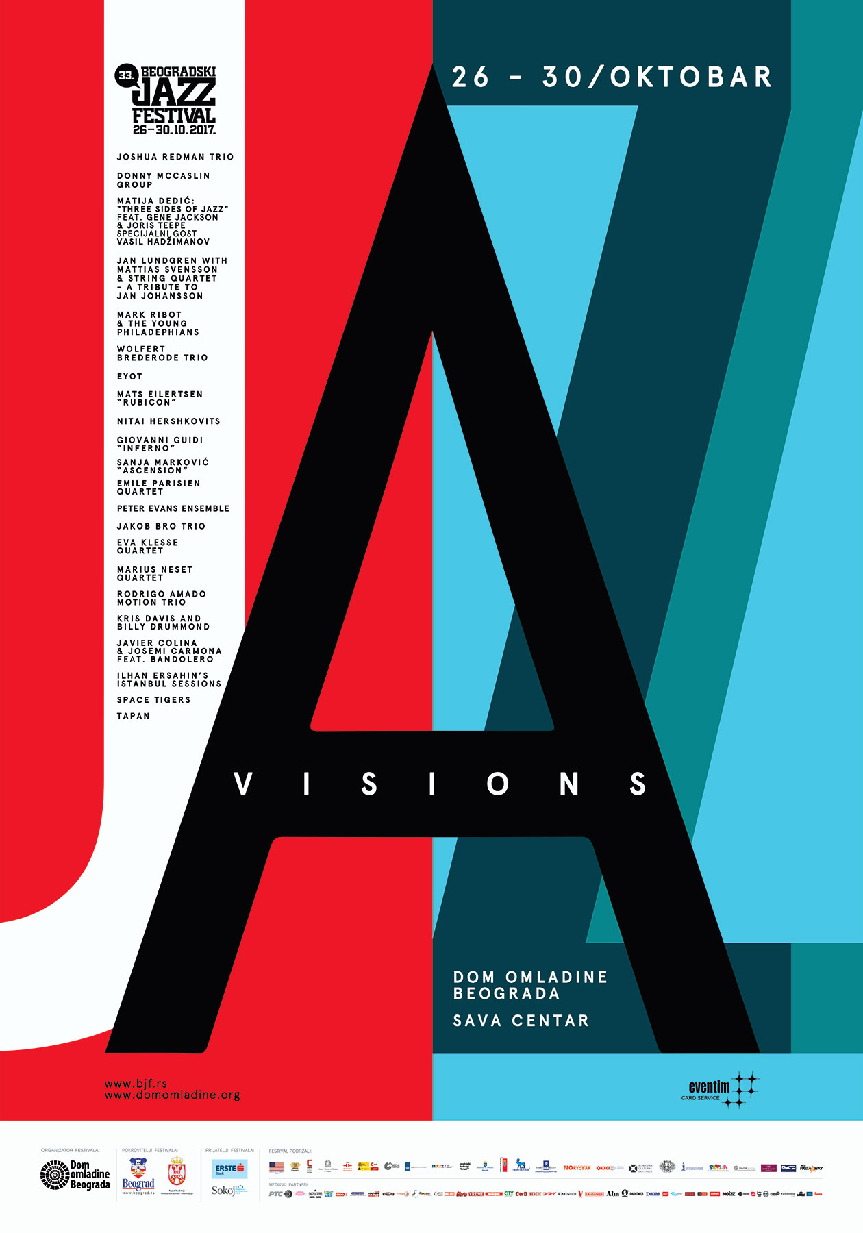 Dom omladine Beograda od 26. do 30. oktobra 2017. predstavlja 33. Beogradski džez festival, pod sloganom “DŽEZ VIZIJE”/”JAZZ VISIONS“.