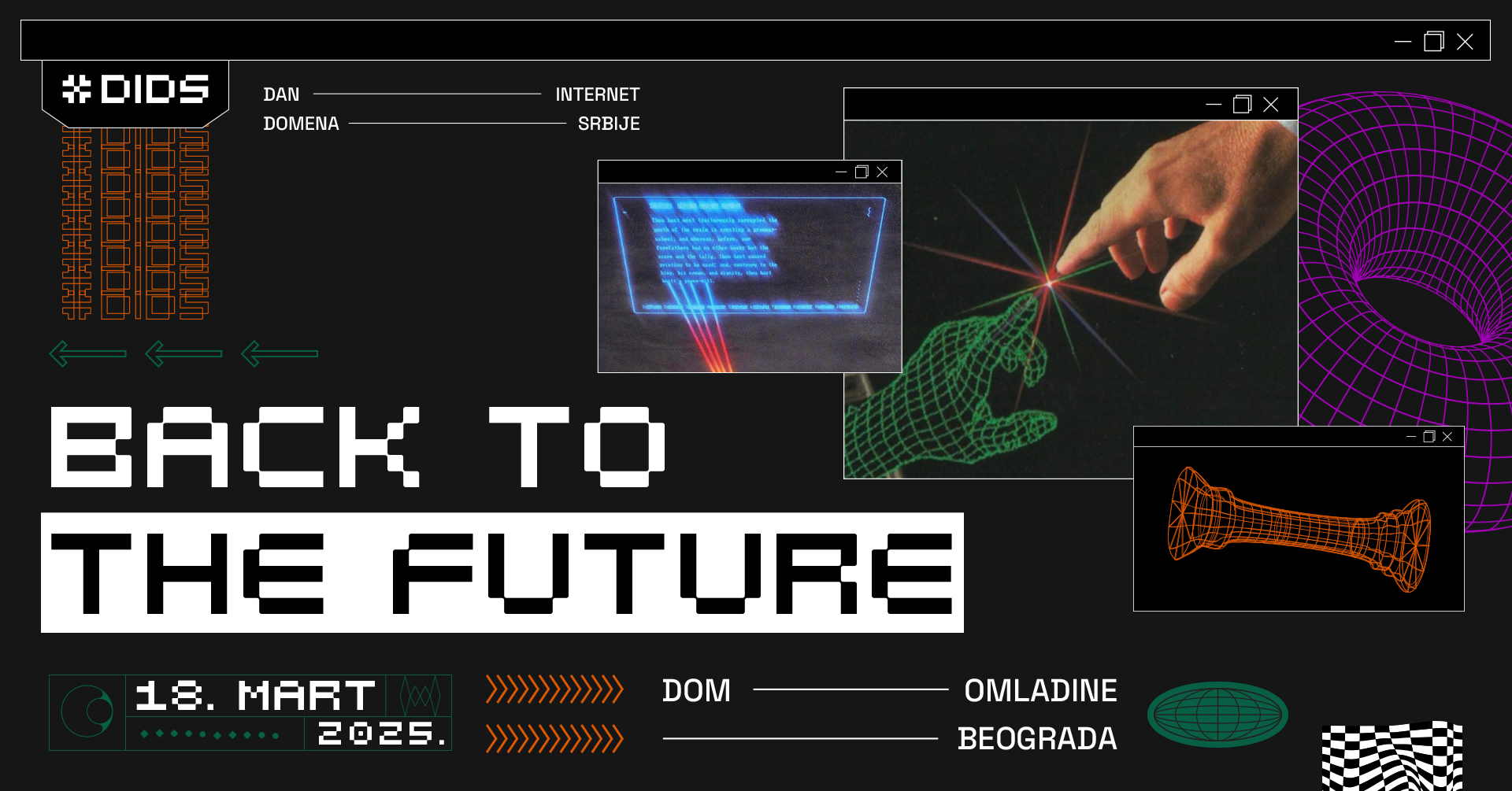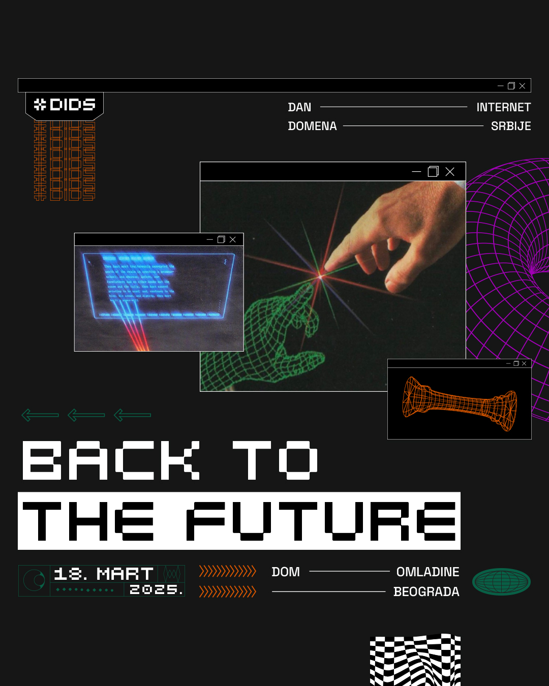 Petnaesta konferencija Dan internet domena Srbije – DIDS 2025 će biti održana 18. marta 2025. godine u Domu omladine Beograda, u organizaciji Registra nacionalnog internet domena Srbije. Slogan ovogodišnje konferencije glasi “Back To The Future”, a svojim temama, predavačima, panelistima i učesnicima konferencija će duboko zaći u aktuelnu oblast budućnosti interneta koja nam donosi nove regulative i odredbe kojima ćemo morati da se vodimo ako želimo da imamo adekvatno prisustvo i poslovanje na internetu.