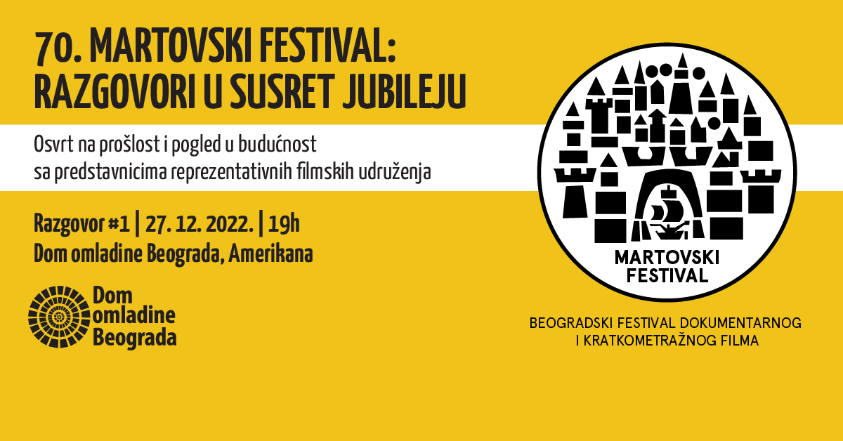 Dom omladine Beograda kao izvršni producent Martovskog filmskog festivala pokreće seriju tribina pod nazivom “70. MARTOVSKI FESTIVAL: RAZGOVORI U SUSRET JUBILEJU”, koje će od decembra 2022, pa do početka jubilarnog, 70. Martovskog festivala u martu mesecu 2023. godine biti održavane jednom mesečno.