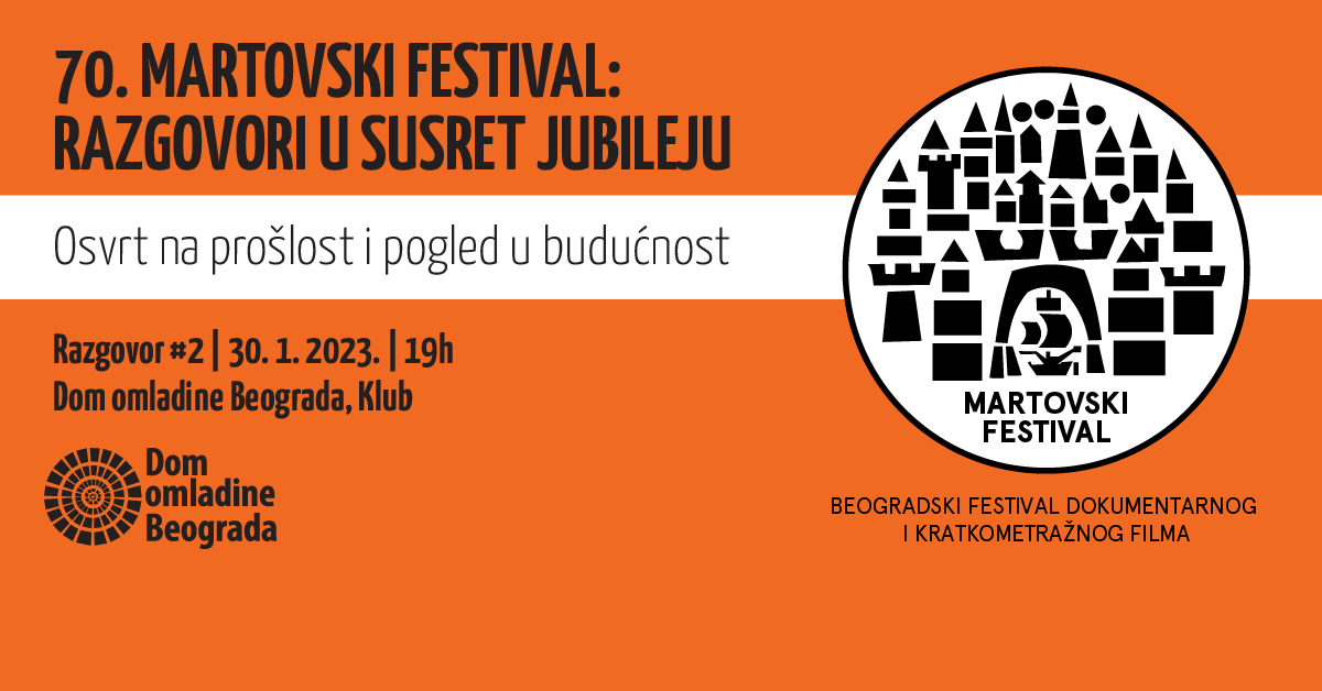 Dom omladine Beograda kao izvršni producent Martovskog filmskog festivala nastavlja seriju tribina pod nazivom “70. MARTOVSKI FESTIVAL: RAZGOVORI U SUSRET JUBILEJU”. U ponedeljak, 30. januara na drugoj tribini težište razgovora biće na eksperimentalnom filmu u kontekstu Martovskog festivala, kako jubilarnog koji će biti održan od 28.3. do 2.4.2023. godine, tako i onog u budućnosti.