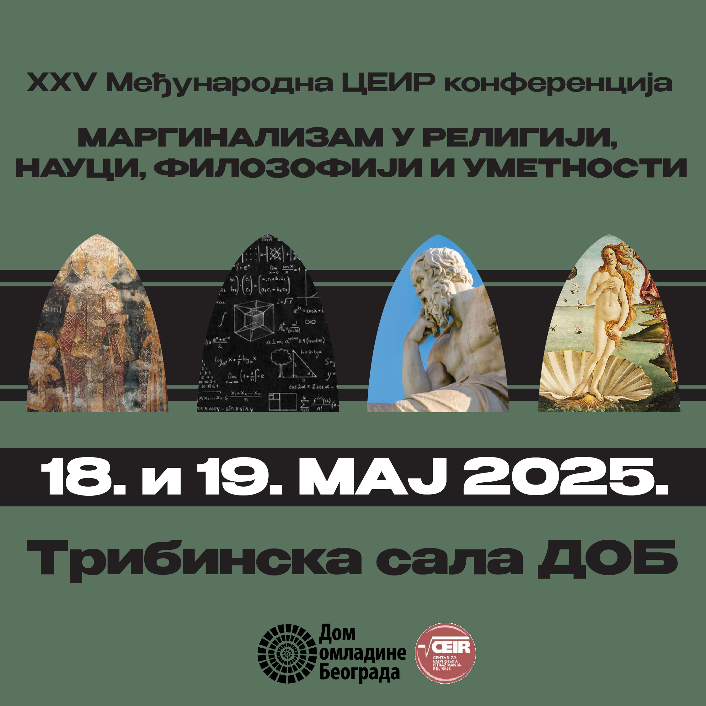 Centar za empirijska istraživanja religije iz Novog Sada, u saradnji sa Domom omladine Beograda, organizuje međunarodnu naučnu konferenciju „Marginalizam u religiji, nauci, filozofiji i umetnosti“. Cilj ove 25. jubilarne međunarodne konferencije jeste u postavljanju teorijskog okvira za proučavanje samog pojma marginalizma kao i pojavnih oblika u različitim oblastima ljudskog stvaralaštva. Prednost je u podrazumevanom interdisciplinarnom pristupu istraživačkom problemu. Mnoštvo je istraživačkih pitanja koja autori pokreću svojim radovima za koja verujemo da će dati i relevantne i kreativne odgovore.