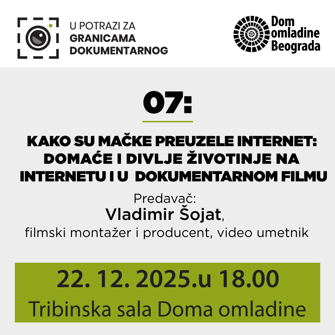 Predavanje: KAKO SU MAČKE PREUZELE INTERNET – DOMAĆE I DIVLJE ŽIVOTINJE NA INTERNETU I U DOKUMENTARNOM FILMU