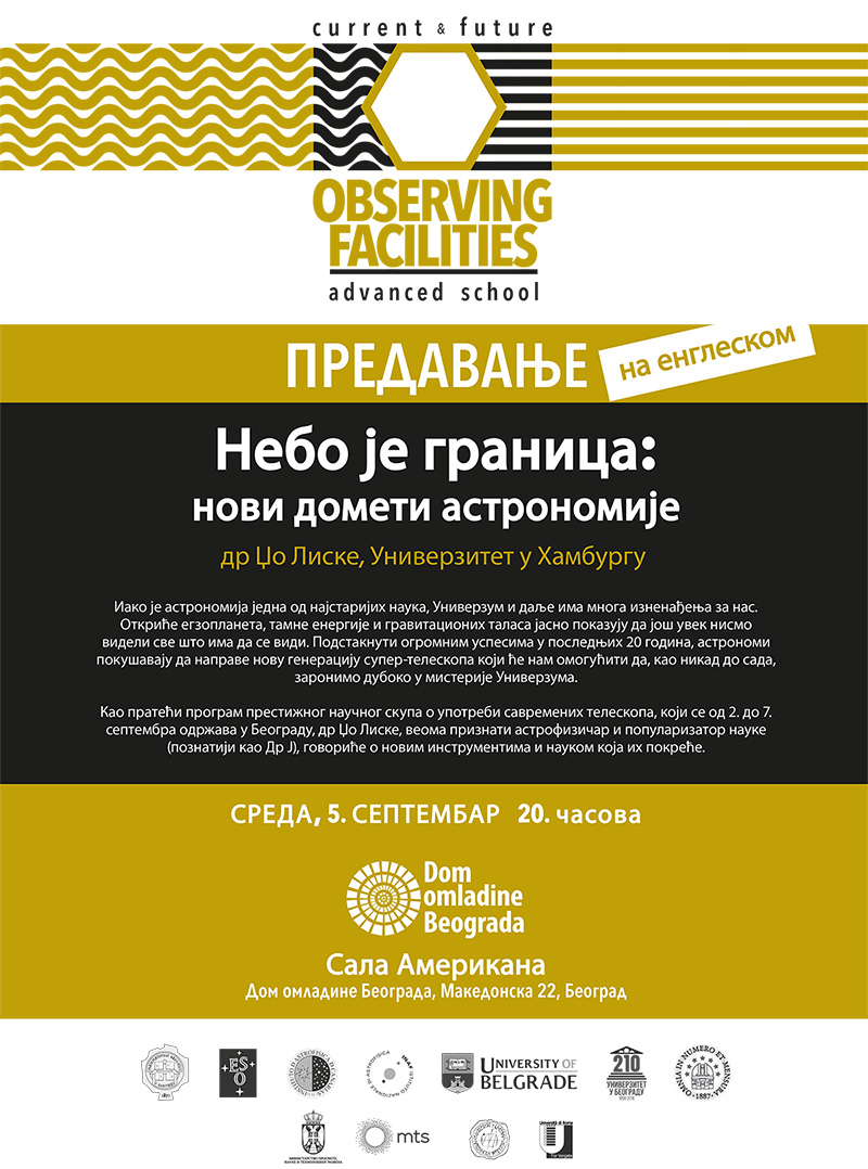 Kao prateći program prestižnog naučnog skupa o upotrebi savremenih teleskopa, koji se od 2. do 7. septembra održava u Beogradu, dr Džo Liske, veoma priznati astrofizičar i popularizator nauke (poznatiji kao Dr J), govoriće o novim instrumentima i nauci koja ih pokreće.