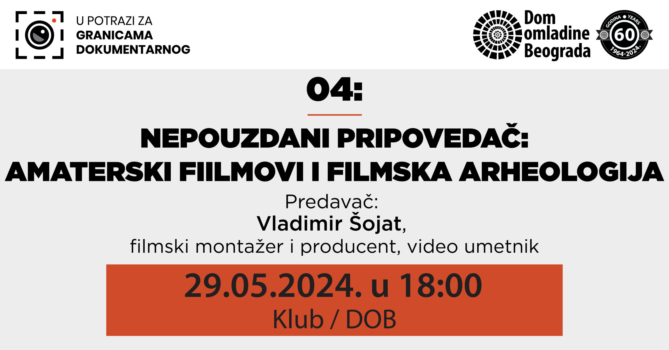 Dom omladine Beograda je u februaru 2024 pokrenuo seriju predavanja o temama vezanim za aktuelnu svetsku produkciju dokumentarnih filmova. Predavanja su fokusirana na fenomene i najnovije tendencije u okviru ove filmske vrste koja je doživela veliku afirmaciju tokom poslednjih 15 godina, a sada doživljava unutrašnju transformaciju, kroz aktivnosti autora koji istražuju granice dokumentarnog izraza: medijske, tehnološke, moralne, žanrovske, ali i granice između fikcije i stvarnosti, objekta i subjekta. Problematika društva spektakla (Society of Spectacle) koju tako tačno poentira 1967. francuski filozof i filmski autor Gi Debor, i danas je aktuelna, možda i više nego što je to bio slučaj pre 50 godina. Prateći ove tendencije pokušavamo da motivišemo mlade sadašnje i buduće aktere digitalnog sveta slika da sa radoznalošću gledaju i istražuju svet oko sebe, a možda i da pokušaju da ga promene.
