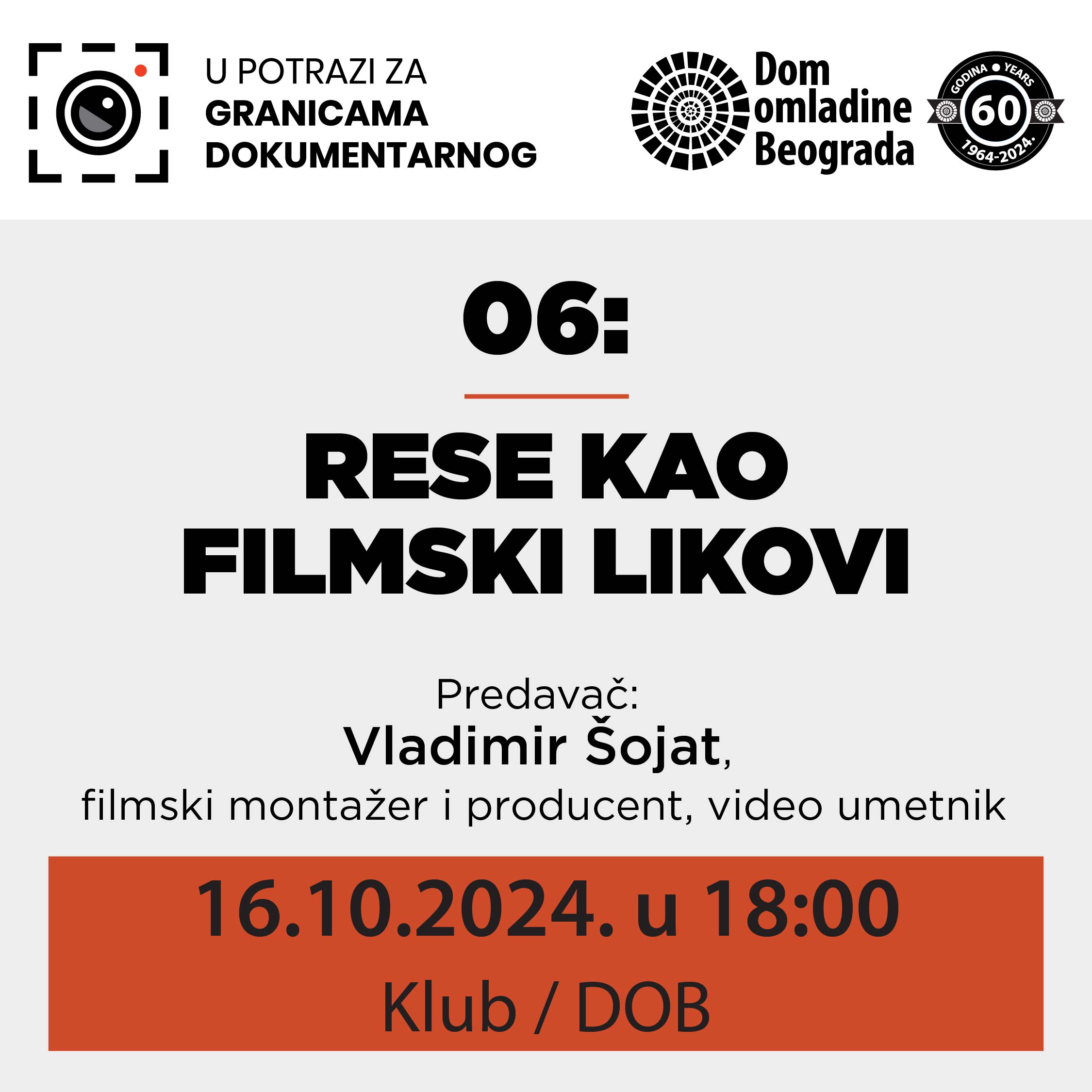Dom omladine Beograda je u februaru 2024 pokrenuo seriju predavanja o temama vezanim za aktuelnu svetsku produkciju dokumentarnih filmova. Predavanja su fokusirana na fenomene i najnovije tendencije u okviru ove filmske vrste koja je doživela veliku afirmaciju tokom poslednjih 15 godina, a sada doživljava unutrašnju transformaciju, kroz aktivnosti autora koji istražuju granice dokumentarnog izraza: medijske, tehnološke, moralne, žanrovske, ali i granice između fikcije i stvarnosti, objekta i subjekta. Problematika društva spektakla (Society of Spectacle) koju tako tačno poentira 1967. francuski filozof i filmski autor Gi Debor, i danas je aktuelna, možda i više nego što je to bio slučaj pre 50 godina. Prateći ove tendencije pokušavamo da motivišemo mlade sadašnje i buduće aktere digitalnog sveta slika da sa radoznalošću gledaju i istražuju svet oko sebe, a možda i da pokušaju da ga promene.