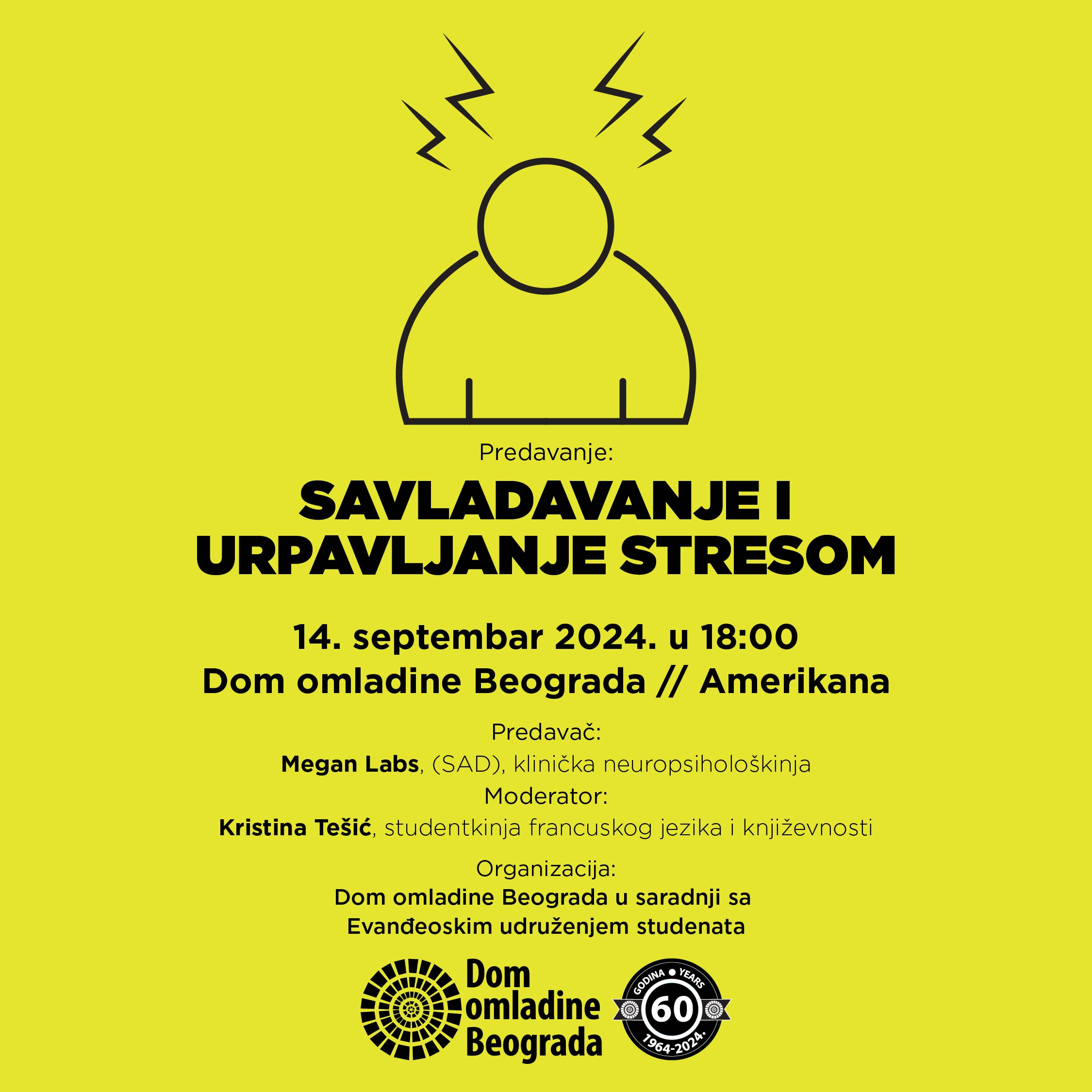 Predavanje “Savladavanje i upravljanje stresom” (14.9.) odlaže se zbog sprečenosti predavača Megan Laabs (SAD) da doputuje zbog hitne zdravstvene situacije, koja zahteva neodložan medicinski tretman. O naknadno određenom terminu obavestićemo publiku u najkraćem mogućem roku. Hvala na razumevanju.