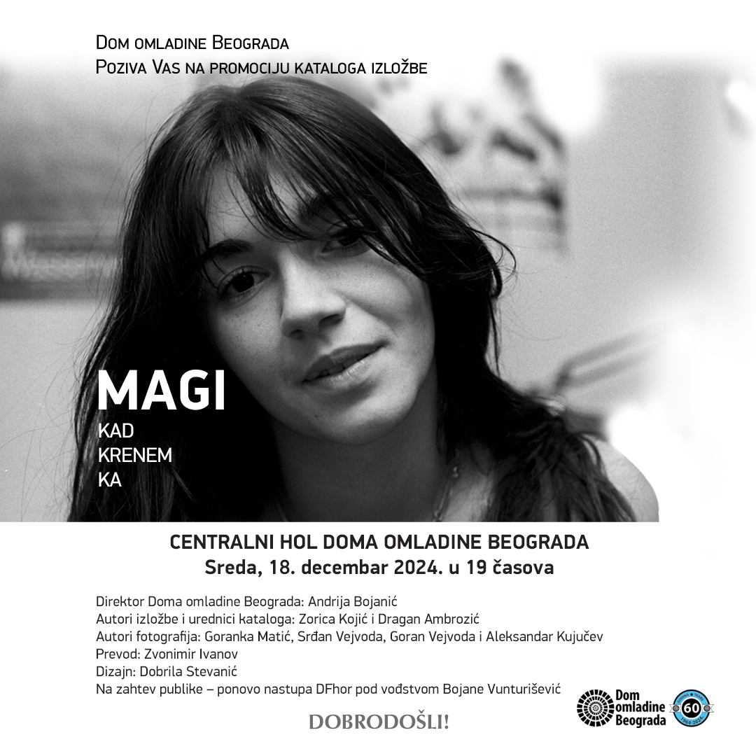 Povodom 60 godina od početka rada Doma omladine Beograda, u čast jedne od prvih i najvećih junakinja moderne rok scene, vesnice nove epohe – Margite Magi Stefanović, upriličili smo od aprila do novembra 2024. izložbu fotografija na Platou ispred Umetničkog paviljona “Cvijeta Zuzorić” na Kalemegdanu pod nazivom “MAGI – KAD KRENEM KA”. Sada sa ponosom predstavljamo katalog koji ovu izložbu ovekovečuje. Autori prolećne izložbe i urednici ovog kataloga su Zorica Kojić i Dragan Ambrozić, autori fotografija – Goranka Matić, Srđan Vejvoda, Goran Vejvoda i Aleksandar Kujučev, dizajn potpisuje Dobrila Stevanić, a prevod uvodnog teksta na engleski Zvonimir Ivanov.
