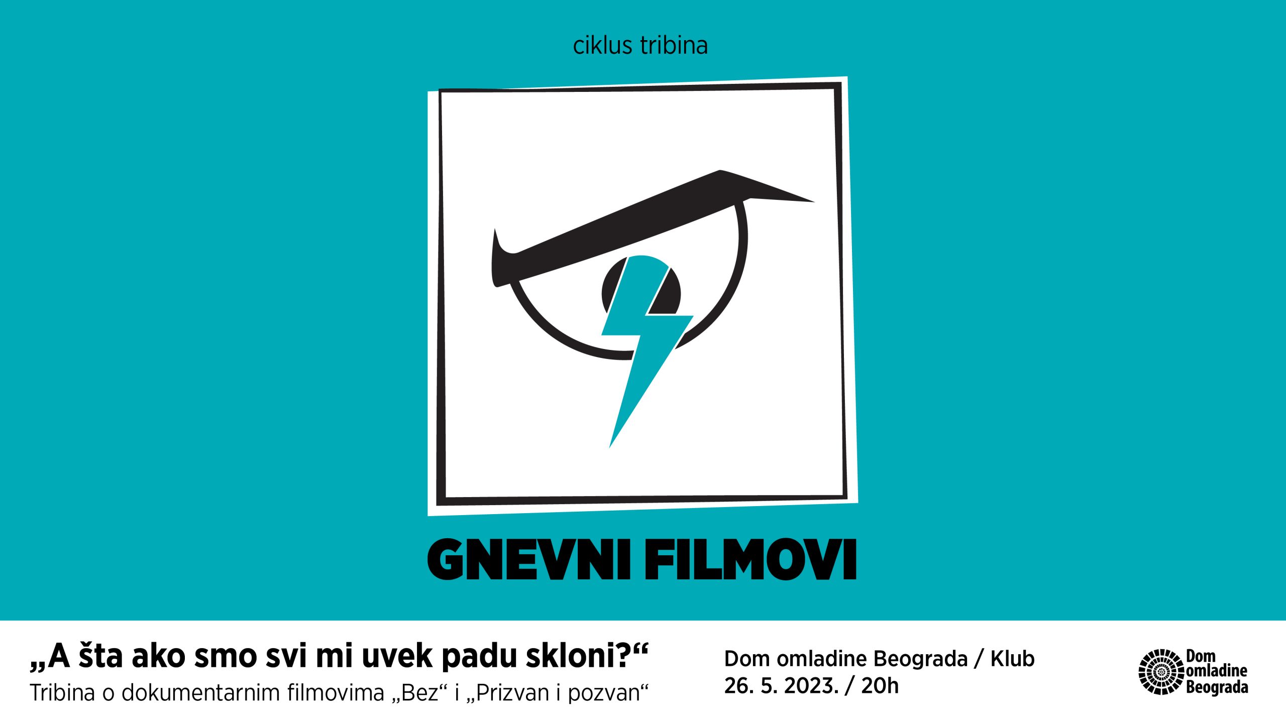 Dom omladine Beograda je u februaru 2020. godine pokrenuo ciklus filmskih tribina koji vode filmski kritičari Zoran Janković i Đorđe Bajić, dugogodišnji hroničari srpskog filma. Treći ciklus „Gnevnih filmova“ tokom 2023. godine predstavlja osam tribina u čijem su fokusu najnovija filmska i serijska ostvarenja srpskih autora, kao i problemi i fenomeni savremenog društva koje oni problematizuju i koji se u njima oslikavaju. Kako živimo u turbulentna vremena puna buke i besa, taj sveprožimajući gnev je neretko pokretačka snaga filmskih autora. Ovaj ciklus tribina i u novoj sezoni predstavlja svojevrsnu hronologiju aktuelnih filmskih dešavanja u Srbiji i svetu, a istovremeno će, sagledavano kroz vizure naših stvaralaca, biti i svedočanstvo vremena u kome živimo.
