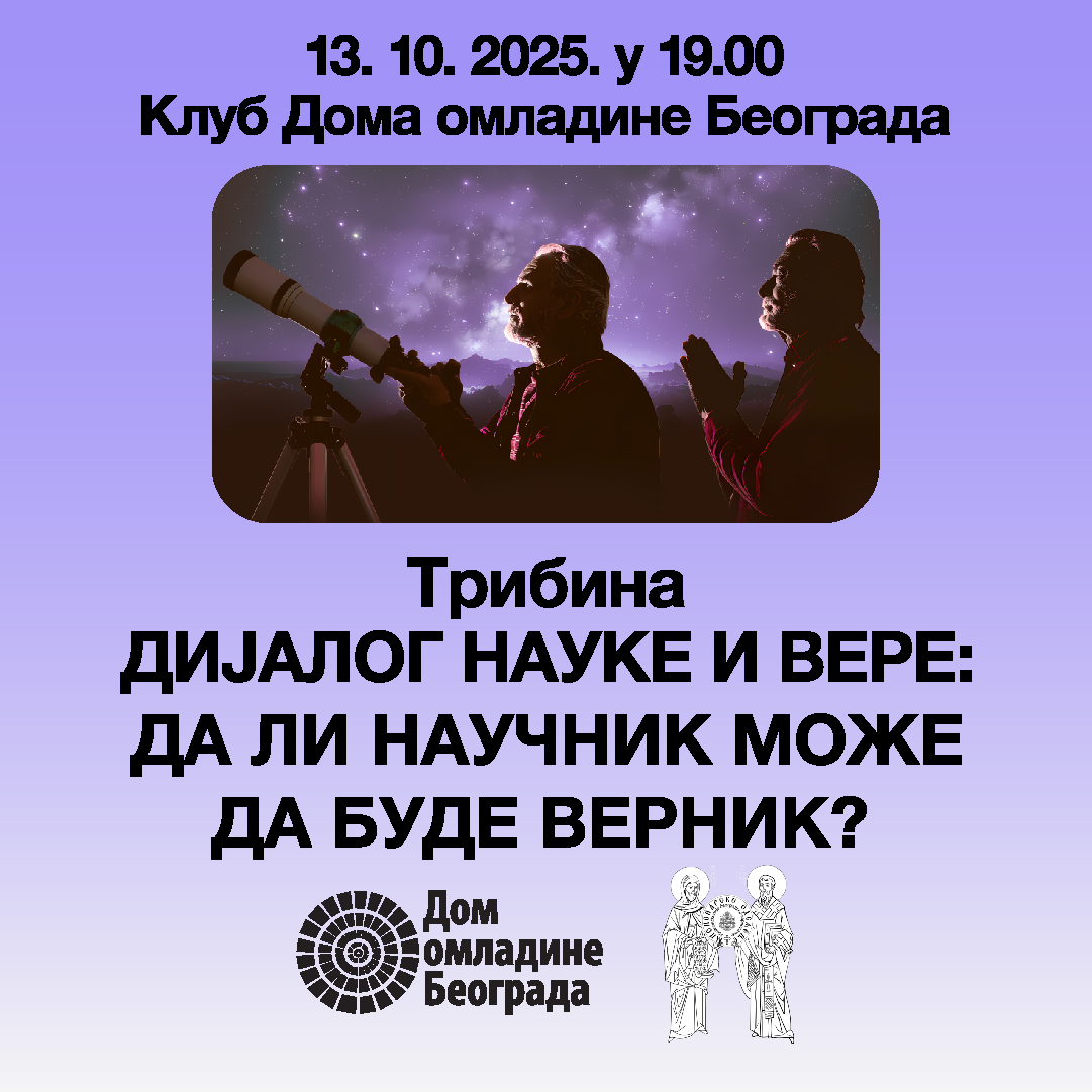 Pozivamo vas na tribinski razgovor koji će otvoriti jedno od najvažnijih i najdelikatnijih pitanja savremenog društva: odnos nauke i vere u životu pojedinca, ali i u širem društvenom i kulturnom kontekstu. Pod naslovom „Dijalog nauke i vere: da li naučnik može da bude vernik?“, ova tribina želi da preispita ustaljene pretpostavke i otvori prostor za dublje razumevanje kako ovih oblasti, tako i ličnosti koje stoje na njihovom raskršću.