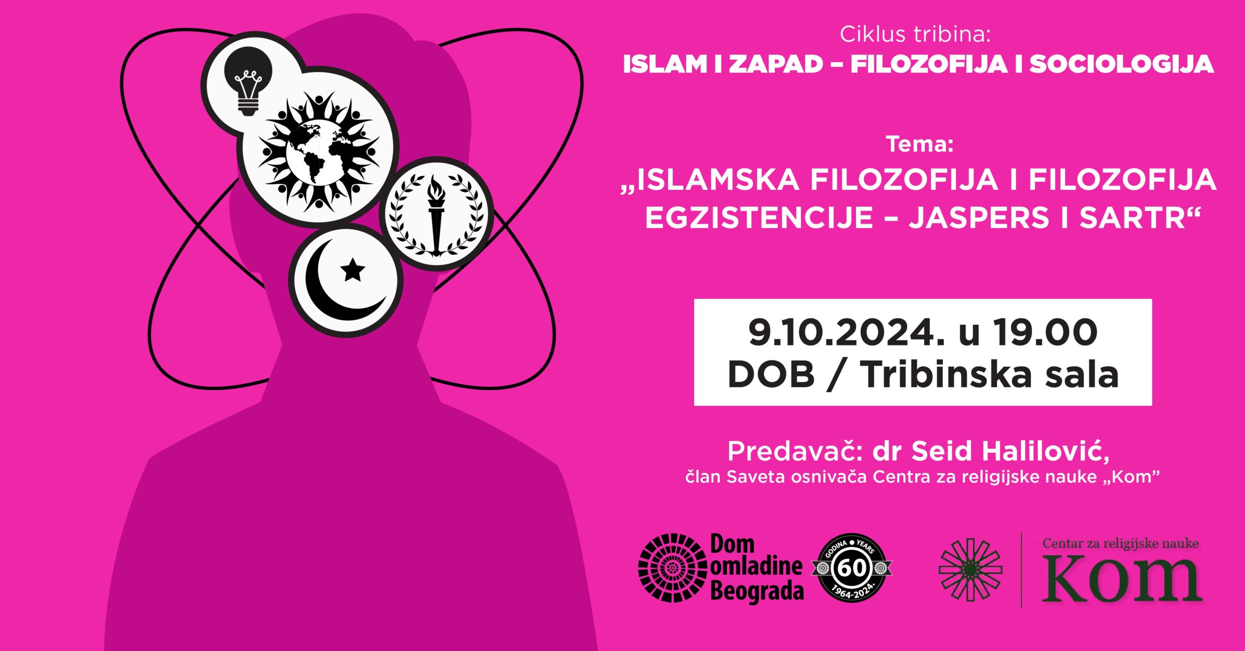 Metodološki okviri kritike zapadnih filozofskih škola iz perspektive islamskog i metafizičkog saznajnog stadijuma predstavljaju novinu u krugovima filozofskog mišljenja u Evropi i kod nas. Ciklus trbina „Islam i Zapad – filozofija i sociologija”, u organizaciji Doma omladine Beograda i Centra za religijske nauke „Kom”, nudi inovativan filozofski sadržaj koji može privući interesovanje stručne publike iz različitih sfera filozofskih, teoloških, kulturoloških, političkih i komparativnih studija.