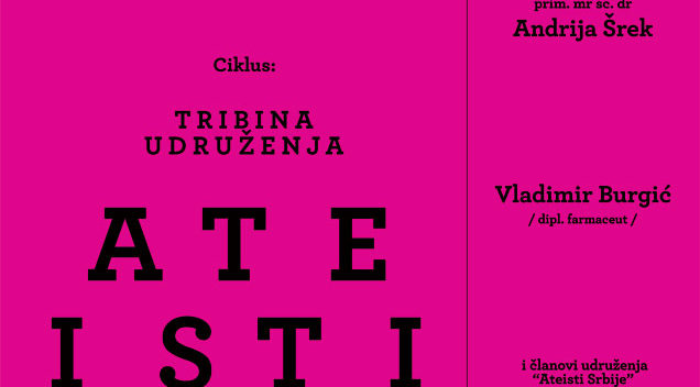 Tribina Udruženja “Ateisti Srbije”//Govore: prim mr sc dr Andrija Šrek, Vladimir Burgić, dipl. farmaceut i drugi gosti.
