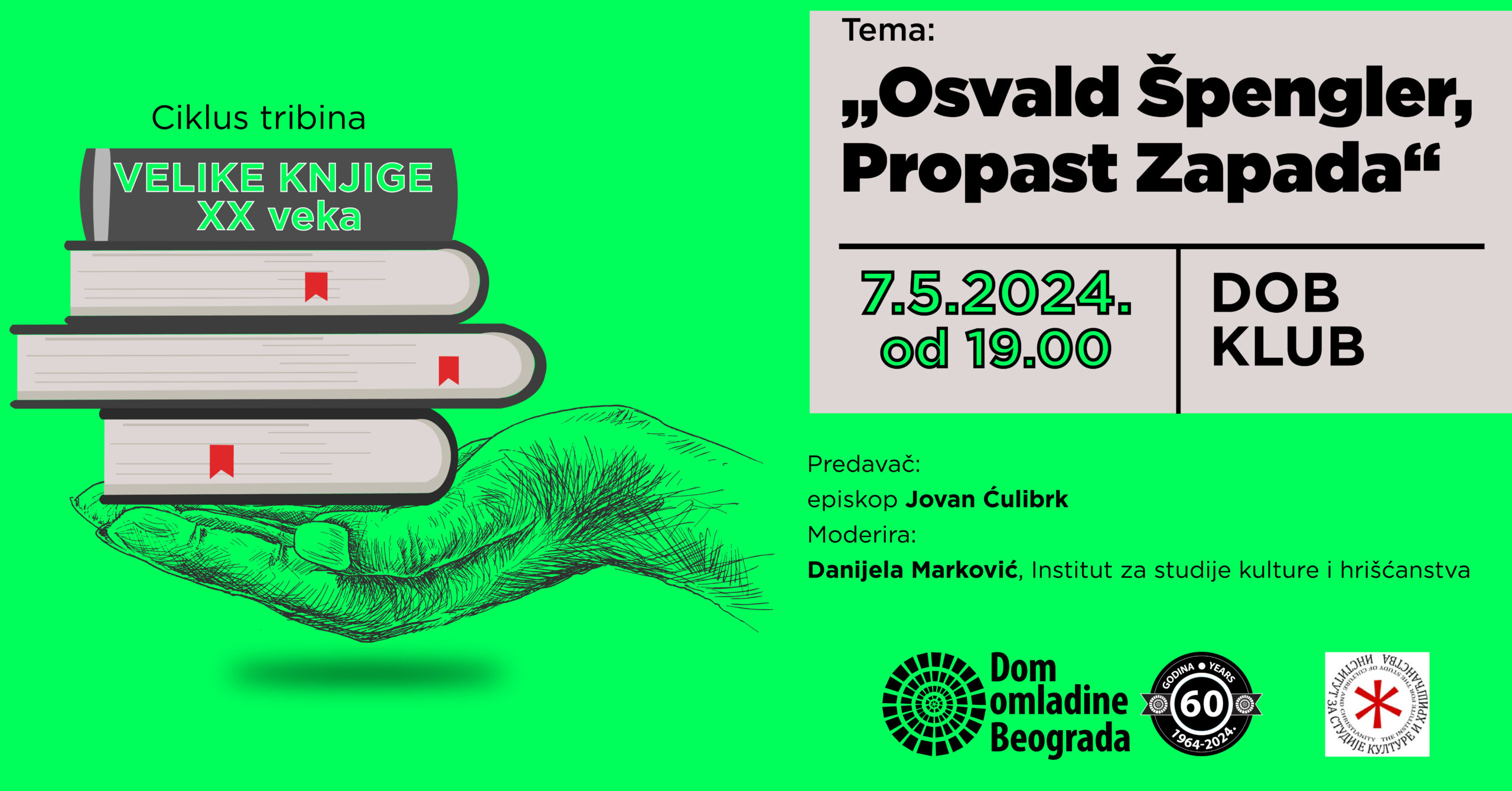 Institut za studije kulture i hrišćanstva, u saradnji sa Domom omladine Beograda, realizuje tokom 2024. godine ciklus tribina „Velike knjige XX veka” sa ciljem da se pažnja šire, ali i stručne javnosti, skrene na neke od najznačajnijih knjiga objavljenih u dvadesetom veku, koje se bave metafizičkim i religioznim pitanjima, a koje do danas nisu izgubile na svojoj relevantnosti. Cilj je takođe da se publika podstakne na njihovo (ponovno) čitanje i interpretiranje u savremenom kontekstu.