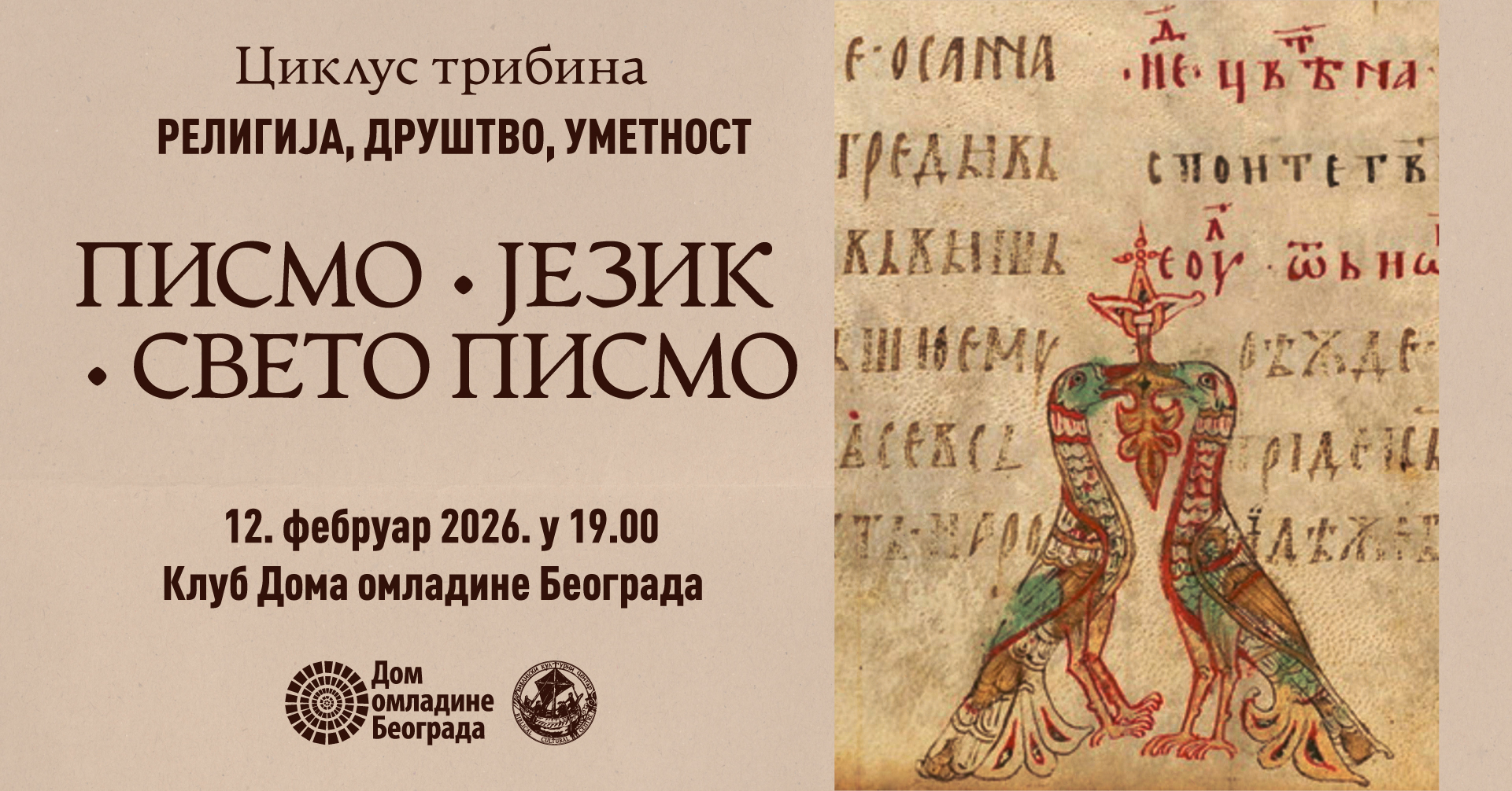 Ciklus tribina: RELIGIJA, DRUŠTVO, UMETNOST