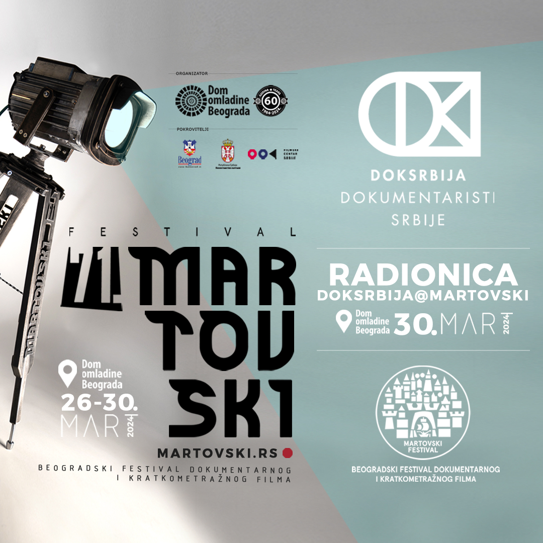 Filmske radionice DokSrbija@Martovski osmišljene su kao jednodnevni besplatan program u okviru 71. Martovskog festivala, tokom kojeg će učesnici imati priliku da se upoznaju sa različitim aspektima dokumentarnog filma o kojima će govoriti neki od najznačajnih savremenih filmskih autora u Srbiji.