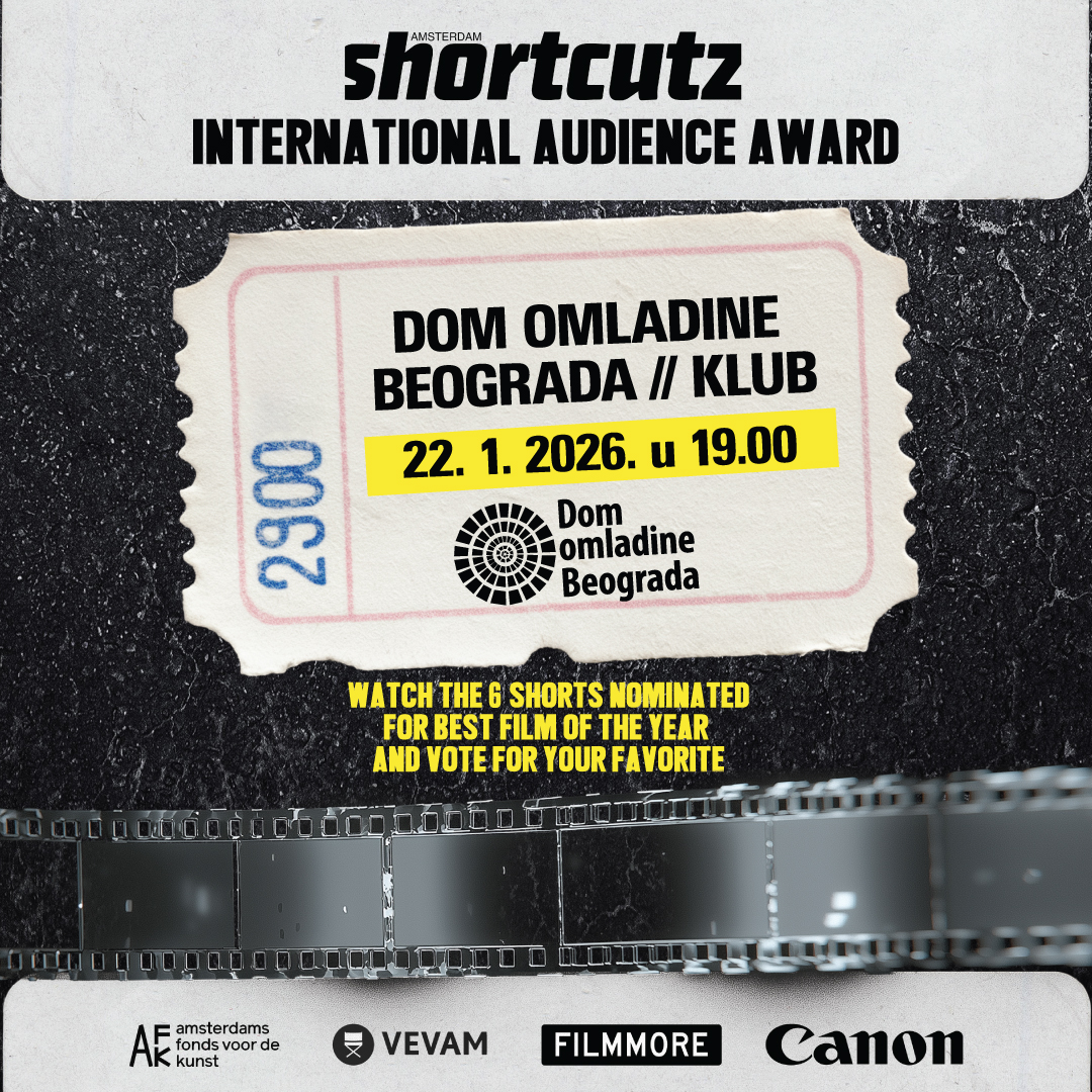 Amsterdam Shortcutz, jedinstvena globalna turneja kratkih filmova koja povezuje publiku i autore kratkih filmova, i ove godine se održava u Domu omladine Beograda. Shortcutz Amsterdam nije samo festival kratkih filmova – to je platforma koja kratki film vraća u centar pažnje publike, i to globalno: otkriva i podržava nove autore, povezuje autore sa međunarodnom publikom i profesionalcima, gradi zajednice kroz zajedničko filmsko iskustvo, podstiče razmenu kulturnih perspektiva i omogućava publici da aktivno učestvuje u izboru pobednika.