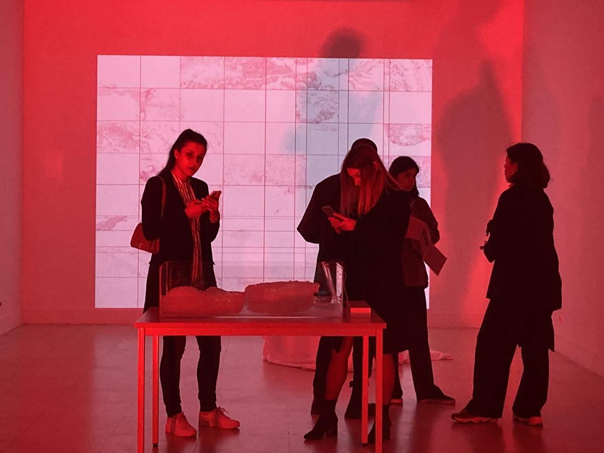 Darija Dragojlović: Za postavku izložbe sam imala zamisao da kroz ambijentalno, scenografsko rešenje prikažem osećaj teskobe ili alarmantnosti celokupne situacije. Iako je možda i u jednu ruku banalno bukvalno prisustvo leda koji se topi u galeriji, smatrala sam da je nekad i takav banalan čin ipak delotvorniji od suptilnijeg ili manje upečatljivog prizora, te da samim tim više doprinosi pozivu na suočavanje sa nestajanjem.