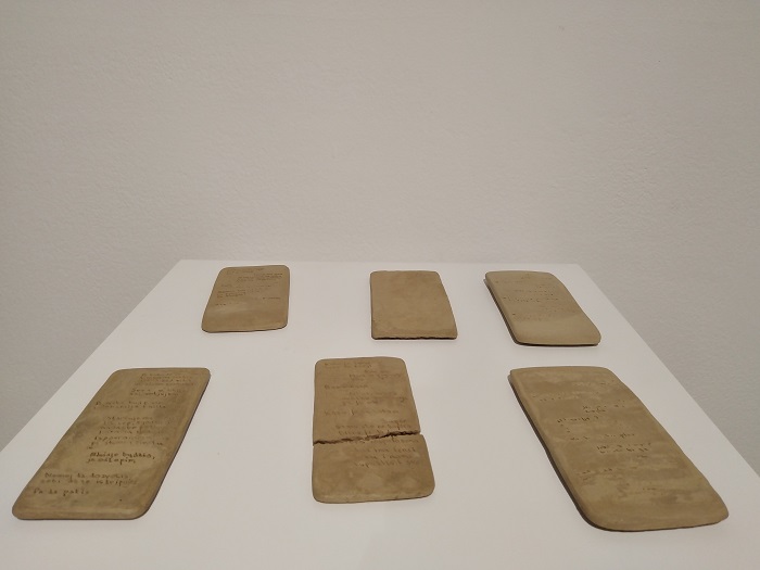 Glinene tablice sam napravila jednog dana kada mi je jako nedostajalo da se čujem sa mamom. Ona tada već nije mogla da komunicira kao nekad, tako da mi je ta želja ostala neispunjena. Onda sam se setila kako smo se nekad dopisivale i kako ja sad nemam ni jednu jedinu poruku od nje. Pa sam, brže – bolje uzela da prepisujem neke druge poruke koje imam u telefonu. Ali sam to prepisivala na glinene tablice, iglom, jako pažnjivo, svesna činjenice da to nema nekog velikog smisla jer će sve ionako da se raspadne.