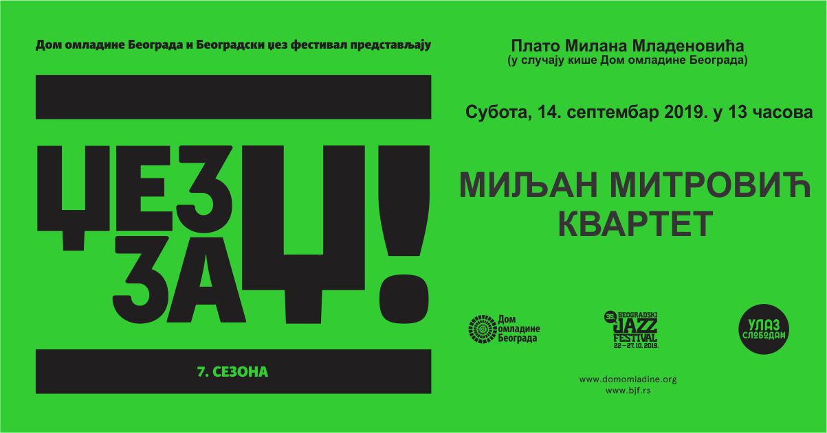 Mladi džez pijanista i kompozitor, Miljan Mitrović nedavno je završio školovanje na Fakultetu muzičke umetnosti i priprema svoj prvi album inspirisan tradicionalnim i modernim džezom. Publika programa “Džez za DŽ” imaće ekskluzivnu priliku da premijerno čuje neke od njegovih kompozicija koje će biti objavljene naredne godine, u subotu 14. septembra od 13 časova kada će sa svojim kvartetom nastupiti na Platou Milana Mladenovića.