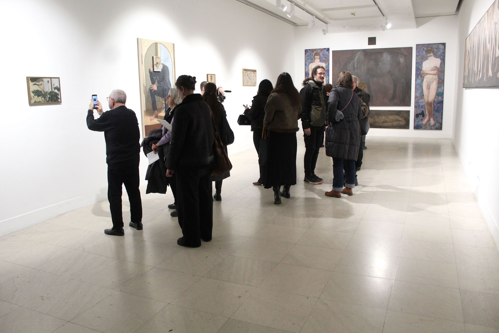 Relja Stevanović: Pri postavljanju izložbe, moja želja je bila da ona u celini ima sklad i tok, u čijem su se sklopu nakon svega izdvojila tri segmenta u većem prostoru Galerije i jedan zasebni u manjem. Svaka od celina u većem prostoru Galerije se može sagledavati kao stupanj u spektru koji prelazi iz materijalnog u idejno. Na levom zidu se u tom smislu prikazuju scene postavljene u okruženju prirodnom oku, koje ima jasnu prostornost i prizemljenost. Centralni prostor, u kojem se nalazi poliptih ,,Prag neizrecivog’’ po kom je izložba i dobila svoj naziv, pokušava da balansira između prikaza čisto idejne konotacije i figura jake forme i predmetnosti. Desnu celinu zauzima rad koji sam po sebi predstava ideje začete u srednjem veku, ,,Ples smrti’’, koji govori o određenoj nekontrolisanosti koju život u svom obliku sadrži i nepredvidivosti dolaska njegovog kraja. Manji prostor galerije, i rad u njemu, može da služi kao odskočna daska u posmatranju ostatka izložbe, ali takođe i kao intimni prostor i zaključak, u slučaju da posmatrač njom završi posetu.
