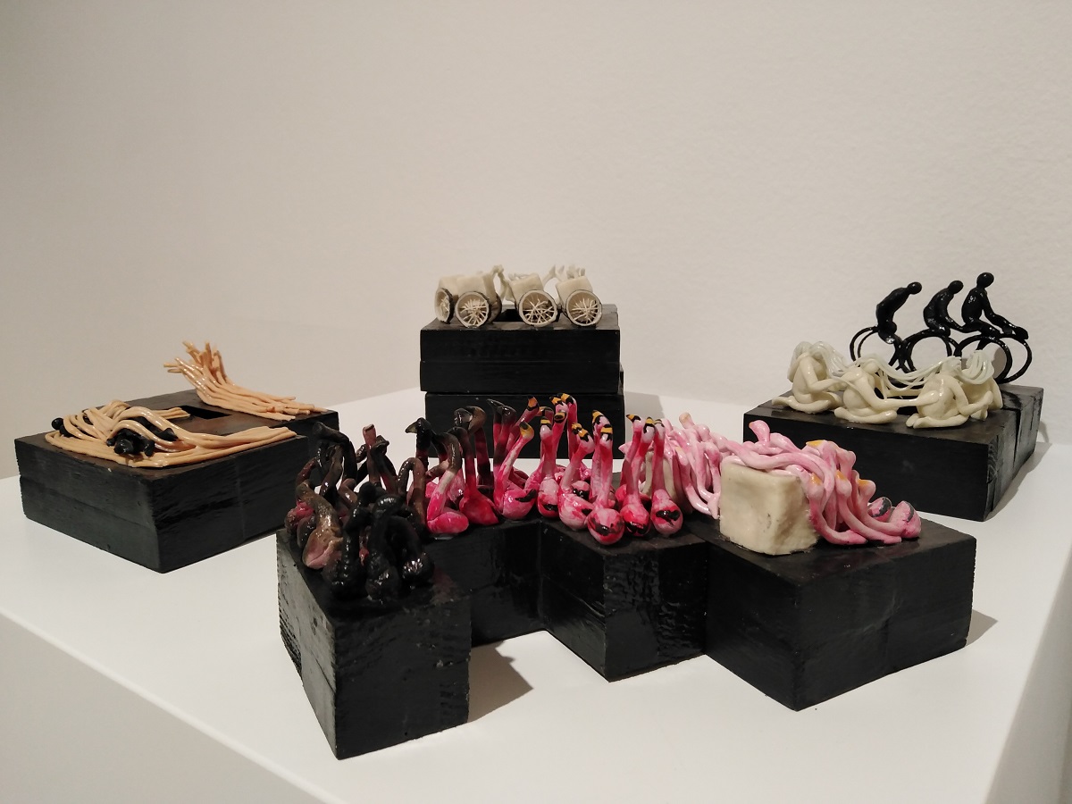 Sara Masnikosa: Predstavljeni čovek samo je jedinka u masi figura. Stilizovani prikazi ljudskih tela se umnožavaju do one granice koja predstavlja kulminaciju sadržaja i emocija. Takođe, postoje dva bitna odnosa koje figure grade i koji prave raznolikost u vizuelnoj interpretaciji. Figure se nalaze u procesima gomilanja i umnožavanja u jednom od odnosa. Taj proces se odvija u prostorima u kojima forma rada određuje raspored figura. Takođe postoji i onaj odnos u kome se figure umnožavaju pravilno i repetitivno pa se značenje rada određuje kroz izostanak figure iz mase, promenu gesta, ugla ili pravca. Razbijanjem koncepta pravilne repeticije, ukazuje se na drugačije mogućnosti egzistiranja figure – čoveka u tom prostoru.