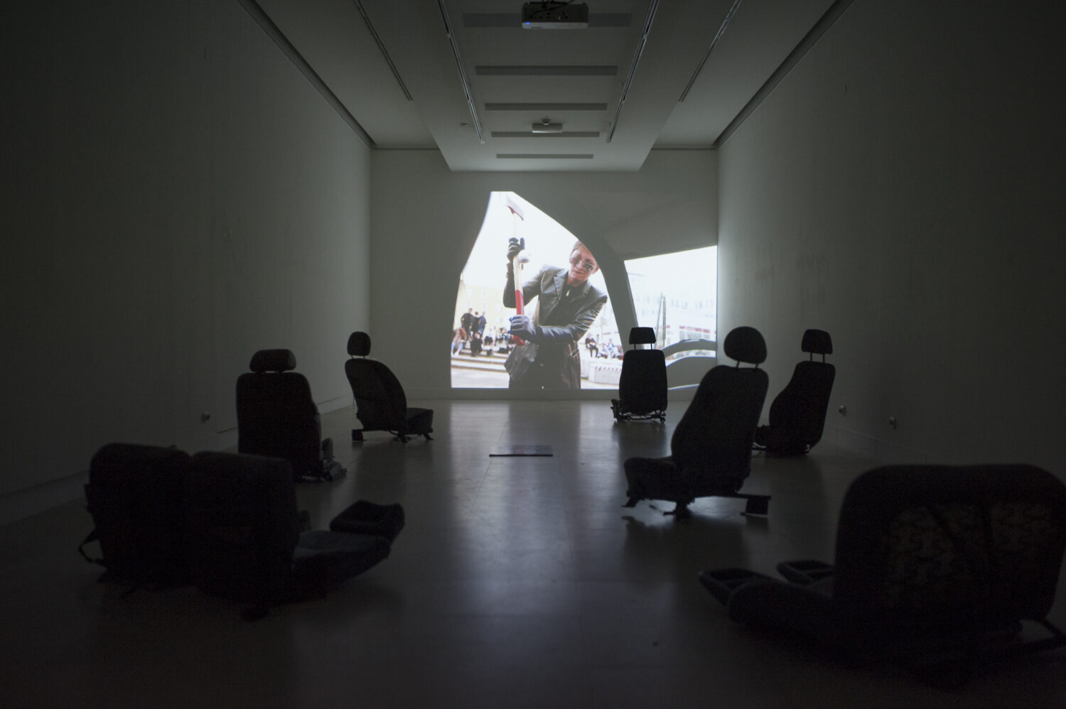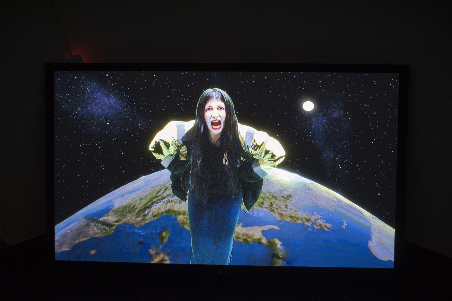 Selma Selman: Polazna tačka izložbe je video „No Space“ koji sam radila za prošlo Venecijansko bijenale, tačnije za Romski Paviljon. Bilo je mnogo komplikacija vezanih za prostor, koje su me dovele do ideje i realizacije video performansa u kome sam predstavila svoje divovsko tijelo žene, kao tijelo koje zauzima čitavu planetu. Pored toga što sam stalno slala nove ideje za paviljon, radovi su mi konstantno bili odbijani, jer je uvijek prostor bio problem. Kada se razmišlja o prostoru, on ima više grana djelovanja, jer prostor nije samo fizički, on je i mentalan.