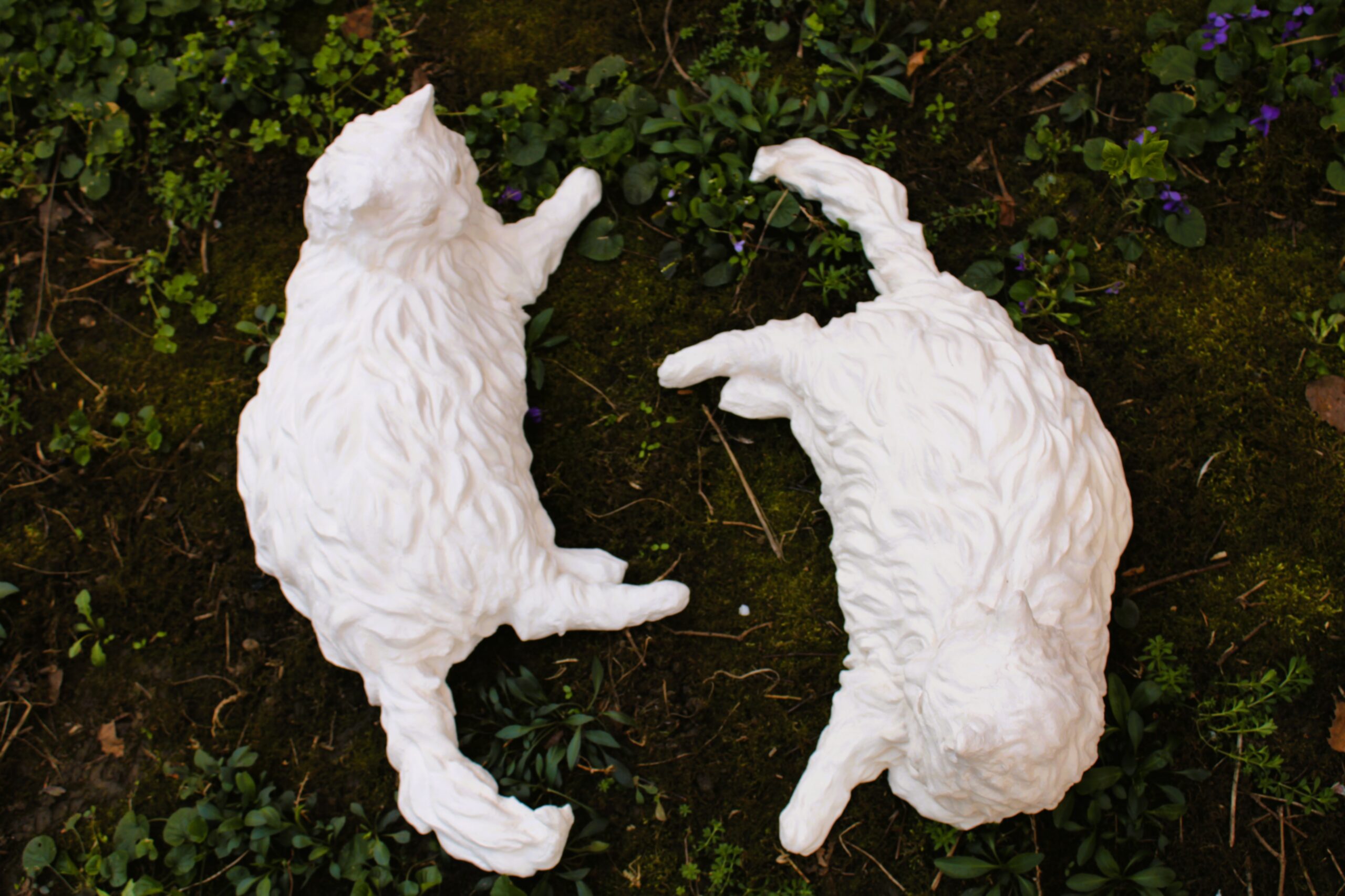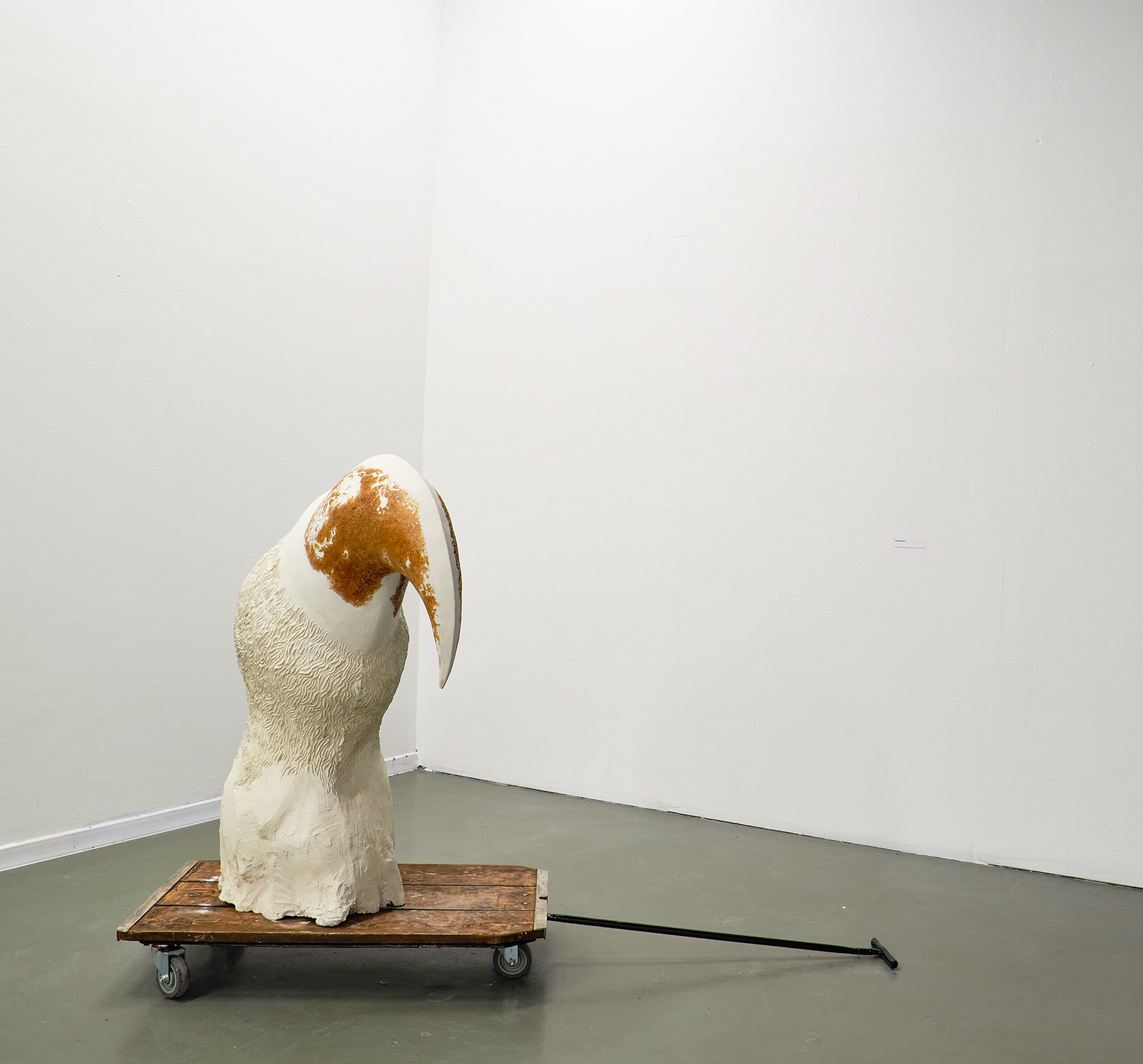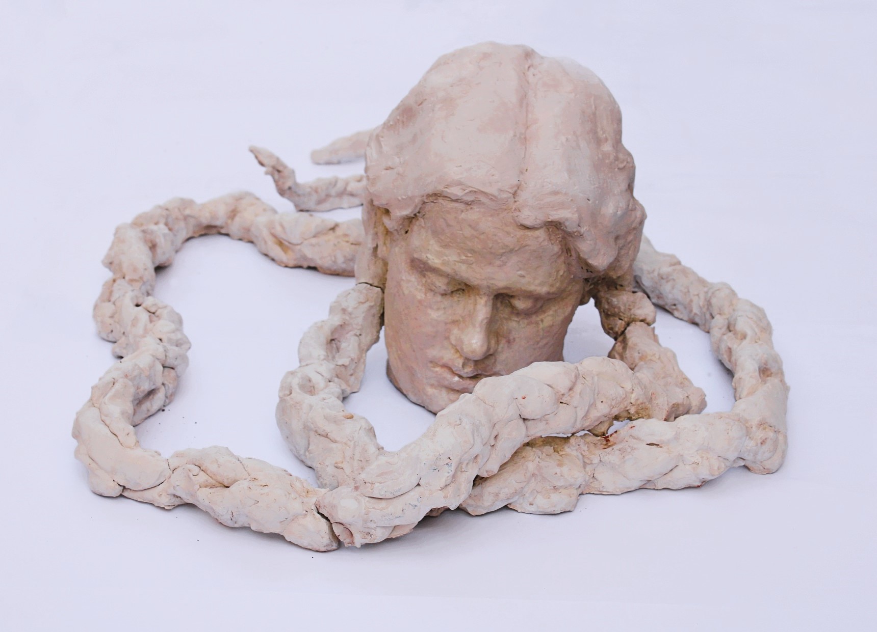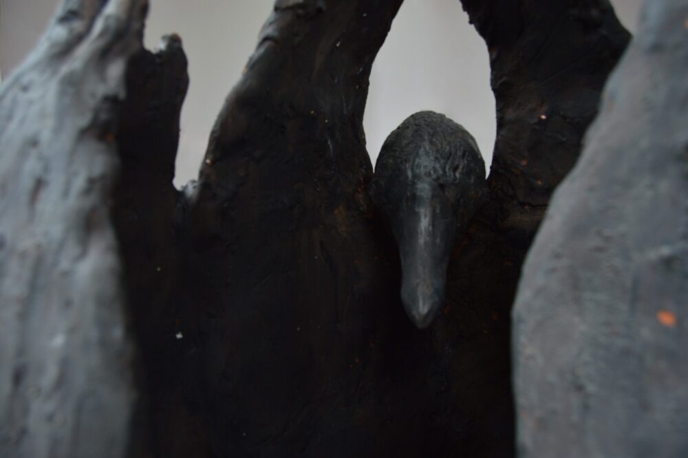 Ksenija Popović ne rekonstruiše samo narativ, već i fizičku komponentu svojih ranijih radova. Višak materijala, sačuvan iz prethodnih skulptura postaje deo novih kompozicija, gde umetnica istražuje mogućnosti oblikovanja i prevođenja značenja kroz sam materijal. Ovaj pristup gradi skulpturu crtački, kolažirajući različite teksture u jednom telu. Materijalnost je ključna, skulptura postoji ne samo kao predmet već i kao svedočanstvo procesa transformacije – smrtno telo besmrtne ideje.