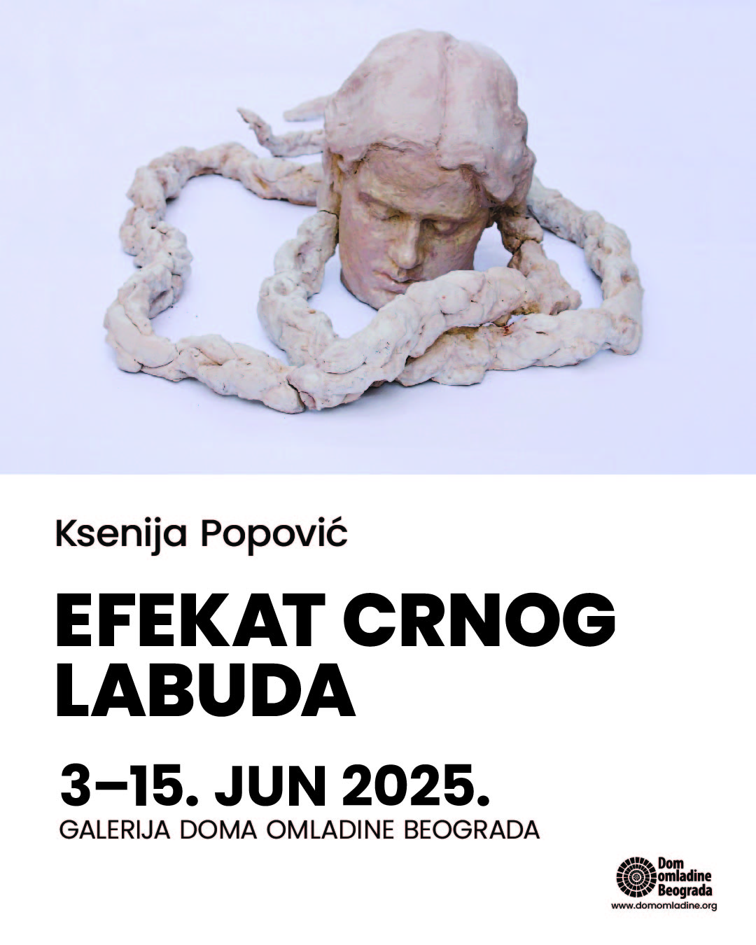 U Galeriji DOB od 3. do 15. juna 2025. održaće se prva samostalna izložba Ksenije Popović pod nazivom „Efekat crnog labuda“. U umetničkom fokusu je istraživanje nepredvidivosti stvaralačkog procesa, slučajnosti koje nastaju i time utiču na dalji tok uobličavanja, kao i na neočekivane veze i odnose između materijala, oblika i značenja.