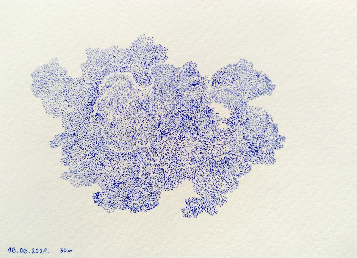 Magda Radojlović – Nacrtaj nešto svakog dana i bićeš okej, kratke vežbe-hemijska olovka 15 х 10.5 cm, 2020.