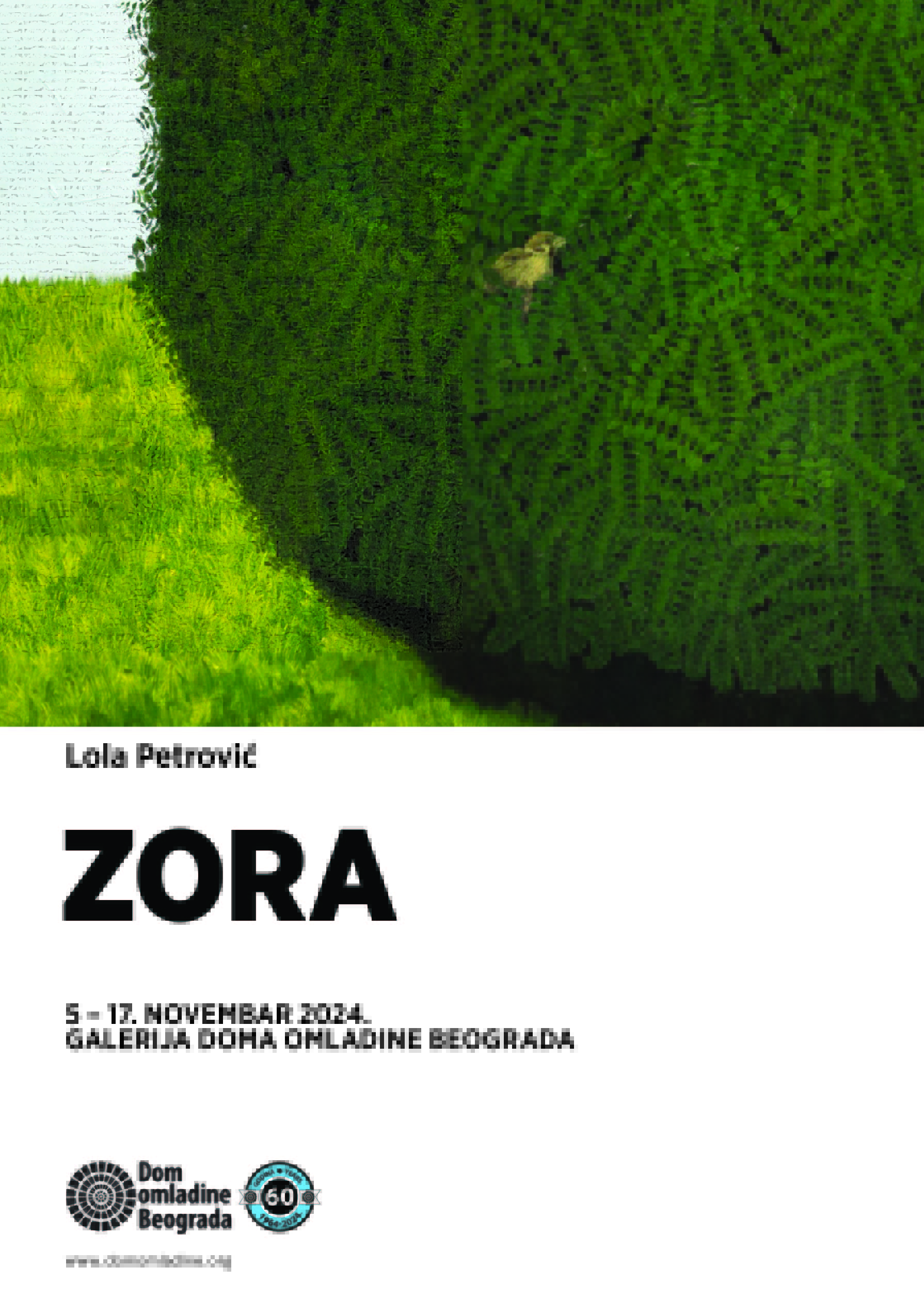 Izložbom pod nazivom „Zora“ u Galeriji Doma omladine Beograda, od 5. do 17. novembra, predstaviće se mlada umetnica Lola Petrović, kroz svoj novi ciklus slika i skulpturu. Autorka teži stvaranju oaze kroz ambijent koji ostvaruje, ali i odabir motiva slika. Izbor tehnike, kolorita i likovnog jezika upućuje na izbor drugačijeg tempa života suprotnog od uzavrelog gradskog, u kojem se teži i produkuje jedan osećaj slobode i spokoja.