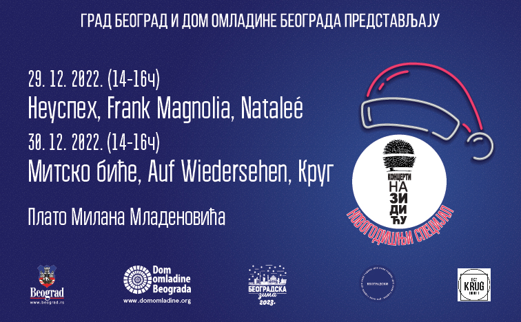 U okviru manifestacije Beogradska zima, Grad Beograd i Dom omladine Beograda predstavljaju specijalan novogodišnji program popularnih besplatnih Koncerata na Zidiću, u četvrtak 29. i petak 30. decembra od 14 do 16 časova, na Platou Milana Mladenovića.