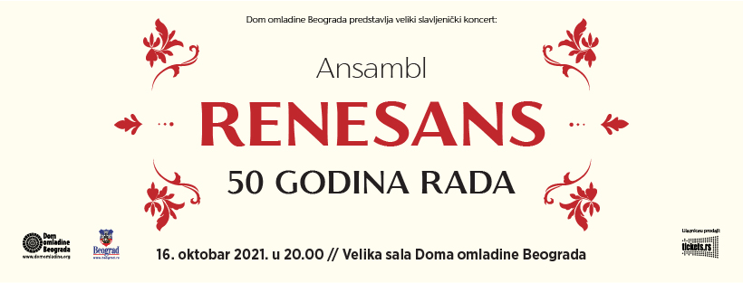 Dom omladine Beograda predstavlja veliki slavljenički koncert Amnsambla RENESANS, povodom 50 godina rada najstarijeg ansambla za ranu i tradicionalnu muziku, u čitavoj Evropi.