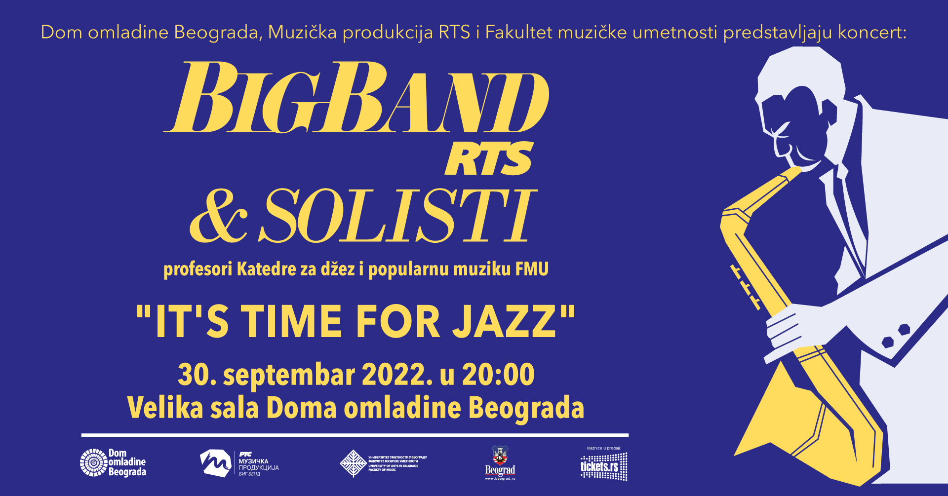 Koncert  „It’s time for Jazz“, 30. septembra  u Domu omladine Beograda, biće prilika da se obeleži prvih 10 godina rada džez odseka FMU, kao i dugogodišnja saradnja sve tri institucije. Sa Big Bendom RTS, kao specijalni gosti – solisti nastupiće profesori Katedre za džez i popularnu muziku FMU, a na programu će biti njihove kompozicije i neki od omiljenih džez standarda.