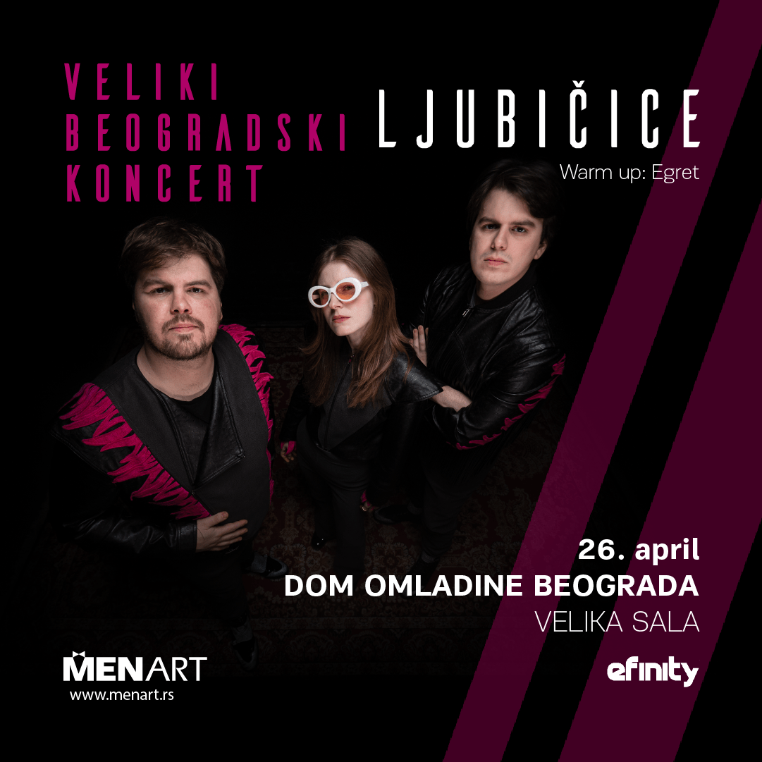 Prolećnim koncertom u Beogradu, bend proslavlja zasluženi uspeh albuma koji se krajem godine pojavio na ekskluzivnom ljubičastom vinilu (Menart), a podrška i gosti na koncertu biće Egret, pančevački muzičar i producent sa svojom ekipom.Predgrupa će početi koncert u 20:30 časova, a Ljubičice na scenu izlaze u 21:15 časova.