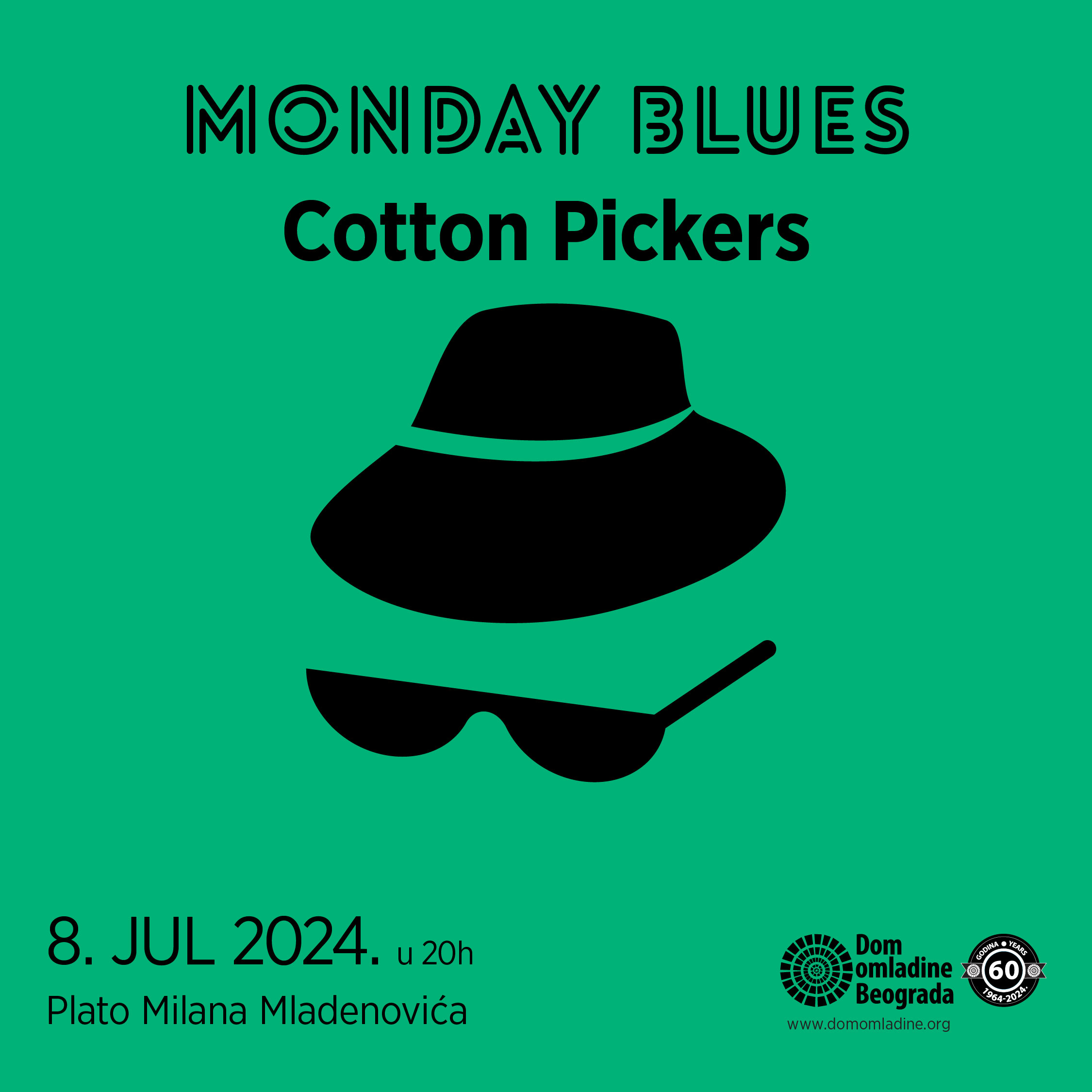 MONDAY BLUES, serijal low-noise bluz koncerata u organizaciji Doma omladine Beograda, prešao je dug put od svog premijernog predstavljanja publici u maju 2017. godine, do jednog od omiljenih letnjih programa publike različitih uzrasta u našem glavnom gradu. U godini u kojoj Dom omladine Beograda obeležava šest decenija postojanja, osma sezona Monday Bluesa predstaviće neka poznata bluz lica, ali i nove saradnje i projekte. Ovog ponedeljka nastupiće popularni domaći bluz-rok bend Cotton Pickers.