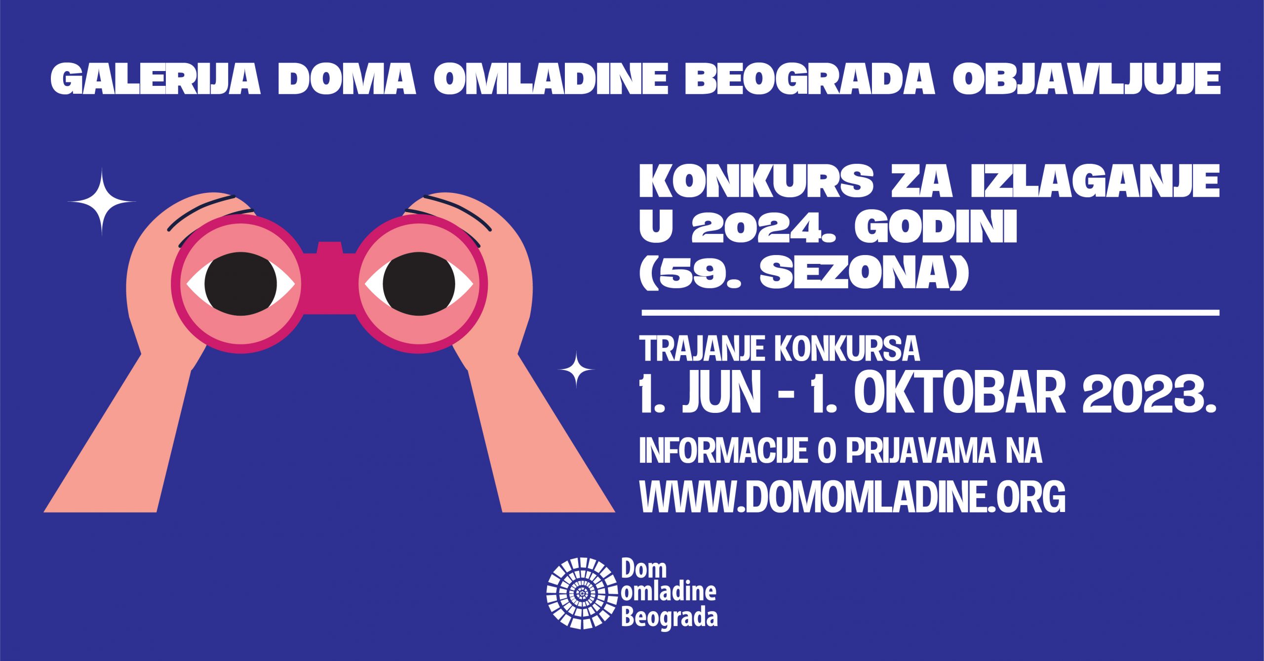 Galerija Doma omladine Beograda raspisuje konkurs za izlaganje u 2024. godini (59. sezona). Konkurs je otvoren od 1. juna do 1. oktobra 2023, za samostalne umetnike/ce, kustoske izložbe i izložbene projekte iz zemlje i inostranstva. Konkurs je namenjen umetnicima koji ne prelaze starosnu granicu od 40 godina. Konačnu odluku o odabiru izlagača donosi Savet Galerije Doma omladine Beograda.