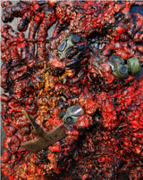 Materijali koji su korišćeni u toku izrade reljefa su pretežno građevinsko-stolarskog karaktera. Pur-pena, drvo, medijapan, stiropor naglašavaju karakter stene i zida zaostalih iz prošlog vremena. Ali, gas-maske, ašovi i bodljikava žica koji su ugrađeni u reljef preuzimaju ulogu ready-made objekata“
