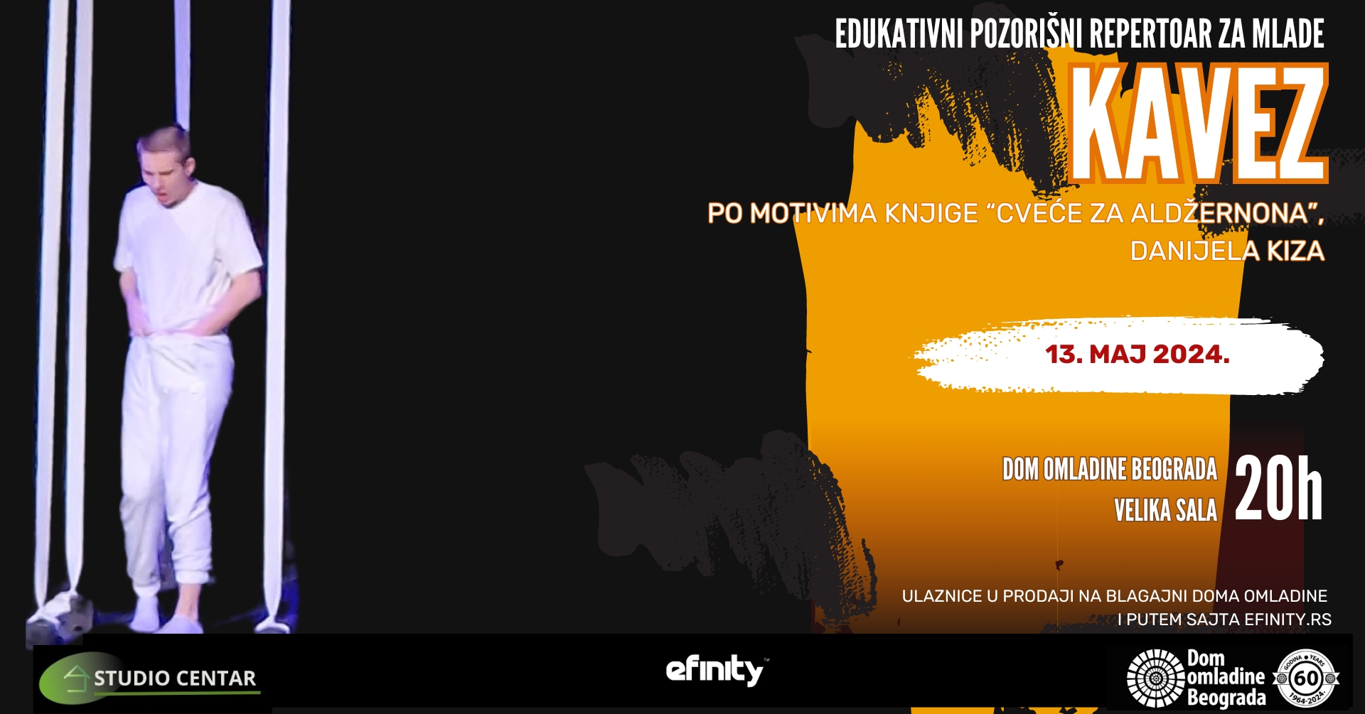 „Kavez“ je predstava rađena po motivima jednog od najpoznatijih romana iz zlatnog doba naučne fantastike “Cveće za Aldžernona”, ovenčanim nagradama Hugo i Nebula.