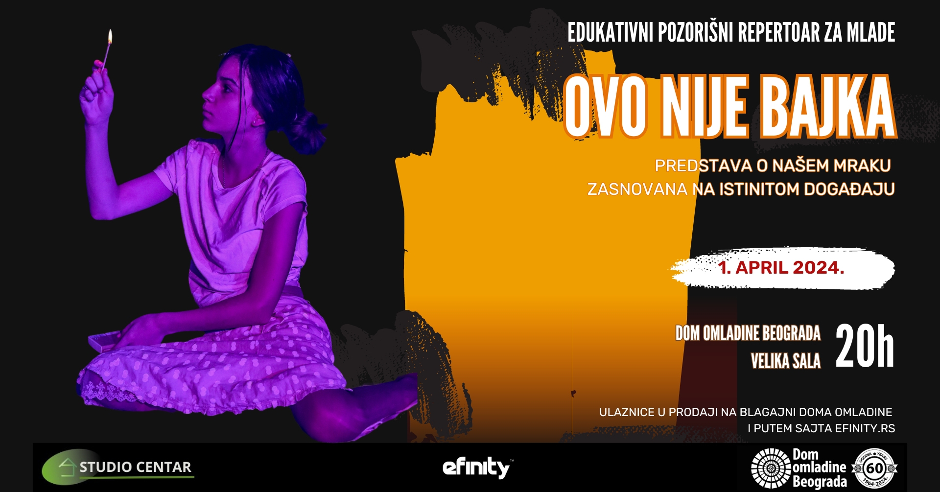 Tokom 2024. godine Dom omladine i Studio Centar zajedno će realizovati edukativni pozorišni program namenjen tinejdžerima. Dva puta mesečno publika – mladi, ali i njihovi roditelji, nastavnici i pedagozi, biće u u prilici da vidi predstave koje obrađuju aktuelne teme iz života tinejdžera: narkomanija, vršnjačko nasilje, marginalizovane grupe mladih, problemi odbacivanja, otuđenje, anoreksija… Istovremeno, kroz ovaj ciklus predstava, DOB i Studio Centar kreiraće platformu za razgovor o svemu onome što direktno utiče na život i sazrevanje tinejdžera.