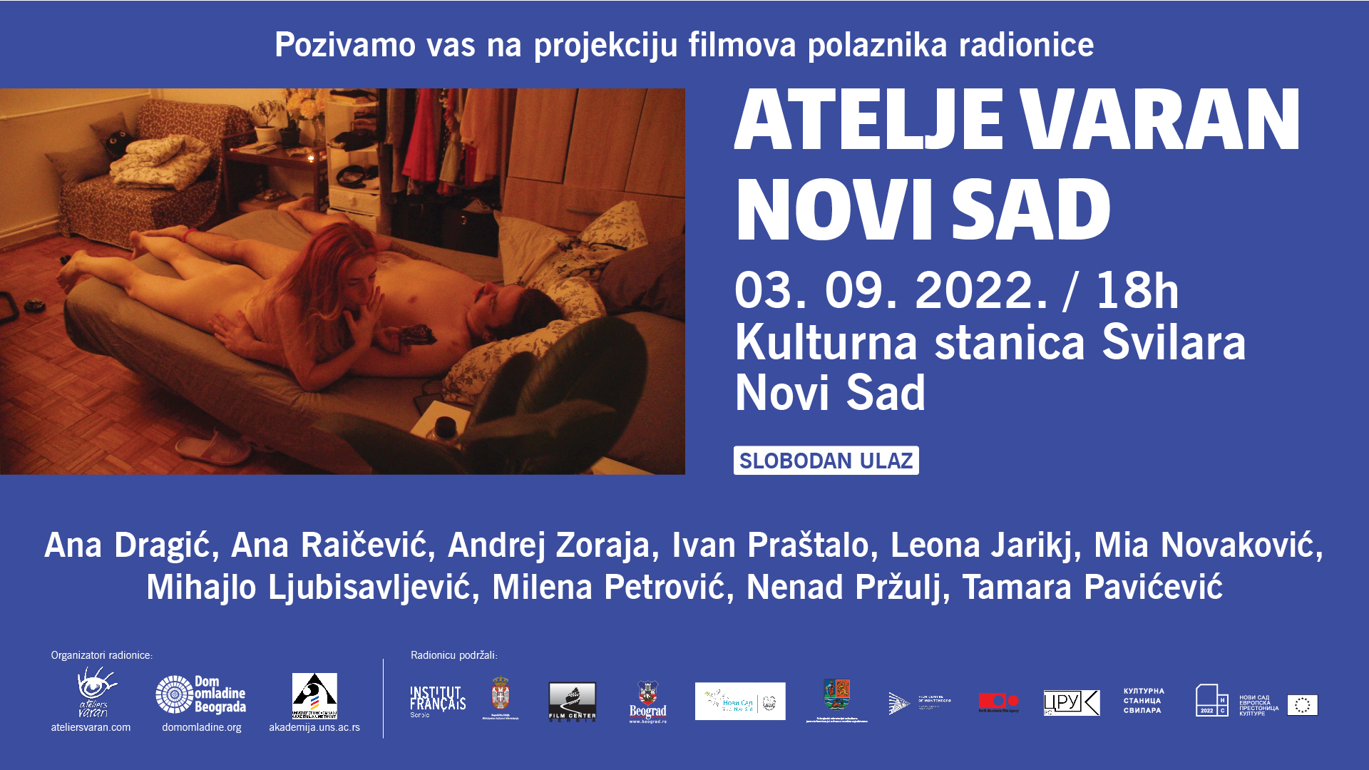 Polaznici radionice prestižne francuske škole dokumentarnog filma Atelje Varan, koja je tokom prethodna dva meseca održana u Novom Sadu, premijerno će publici predstaviti svoje filmove na projekciji 3. septembra 2022. od 18 časova u Kulturnoj stanici Svilara, Novi Sad. Ulaz je slobodan.