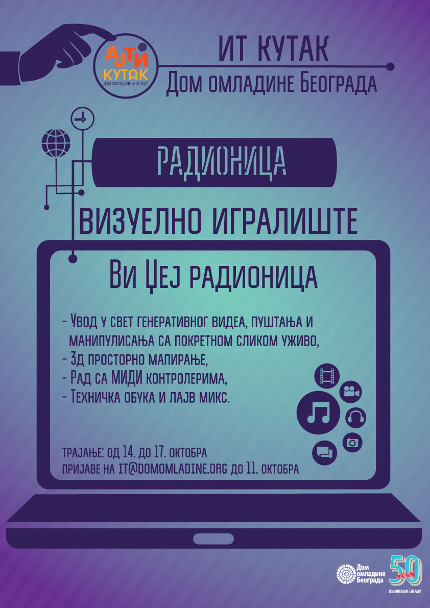 Prijave sa imenom, prezimenom, kontakt elektronskom poštom šaljite na it@domomladine.org sa naznakom “za Vi džej radionicu”.
