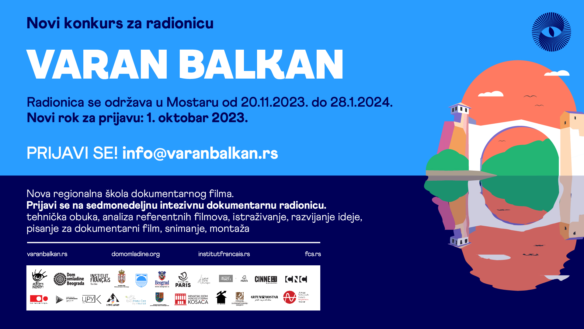 Rok za prijavu na radionicu u Mostaru otvoren je do 1.10.2023. i sve od podataka što je potrebno da bi se prijavili na radionicu nalazi se na sajtu: varanbalkan.rs