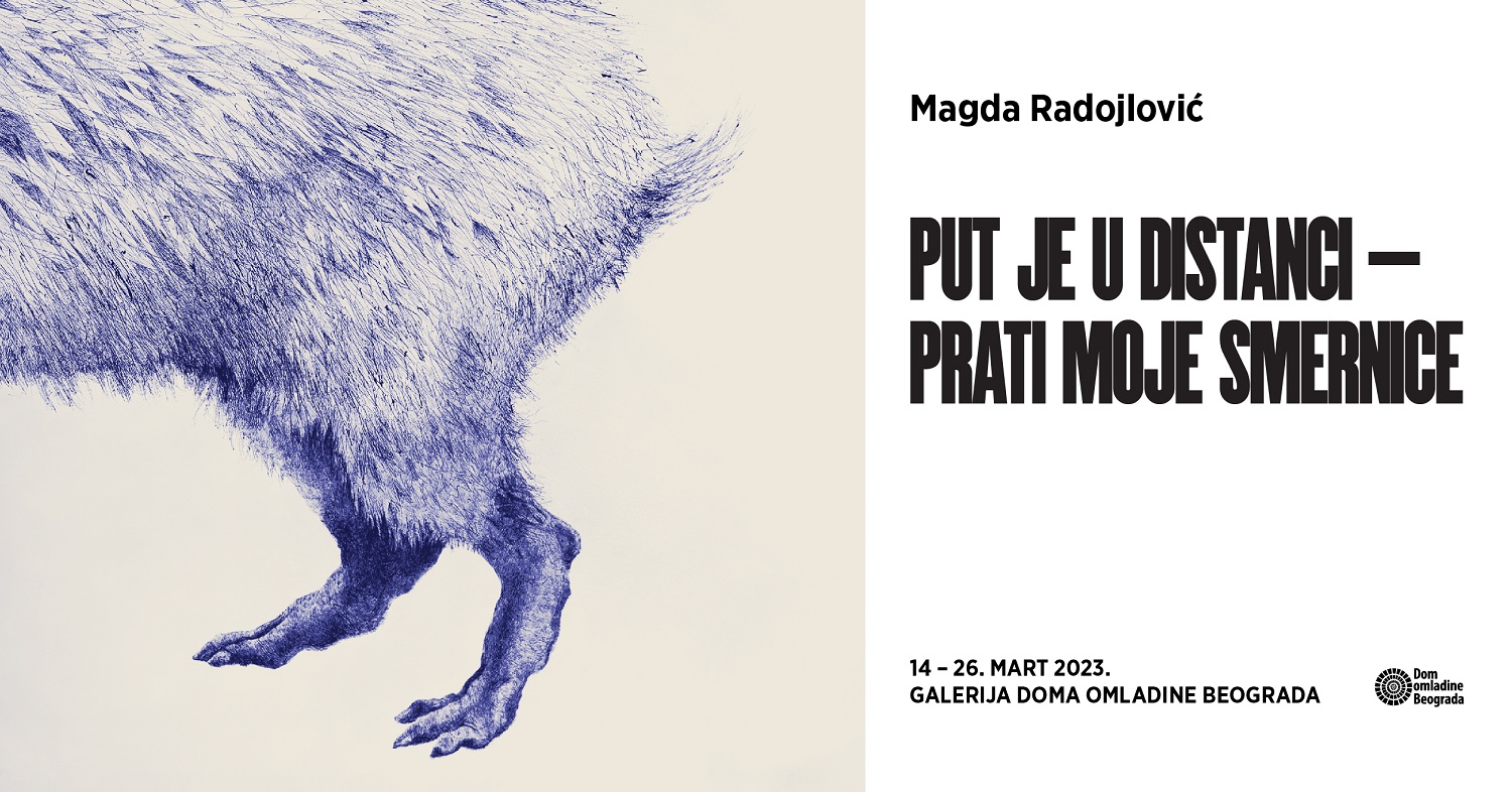 Povodom izložbe „Put je u distanci – Prati moje smernice” biće organizovano vođenje i razgovor sa umetnicom Magdom Radojlović. Izložba je otvorena do 26. marta 2023. u Galeriji Doma omladine Beograda.